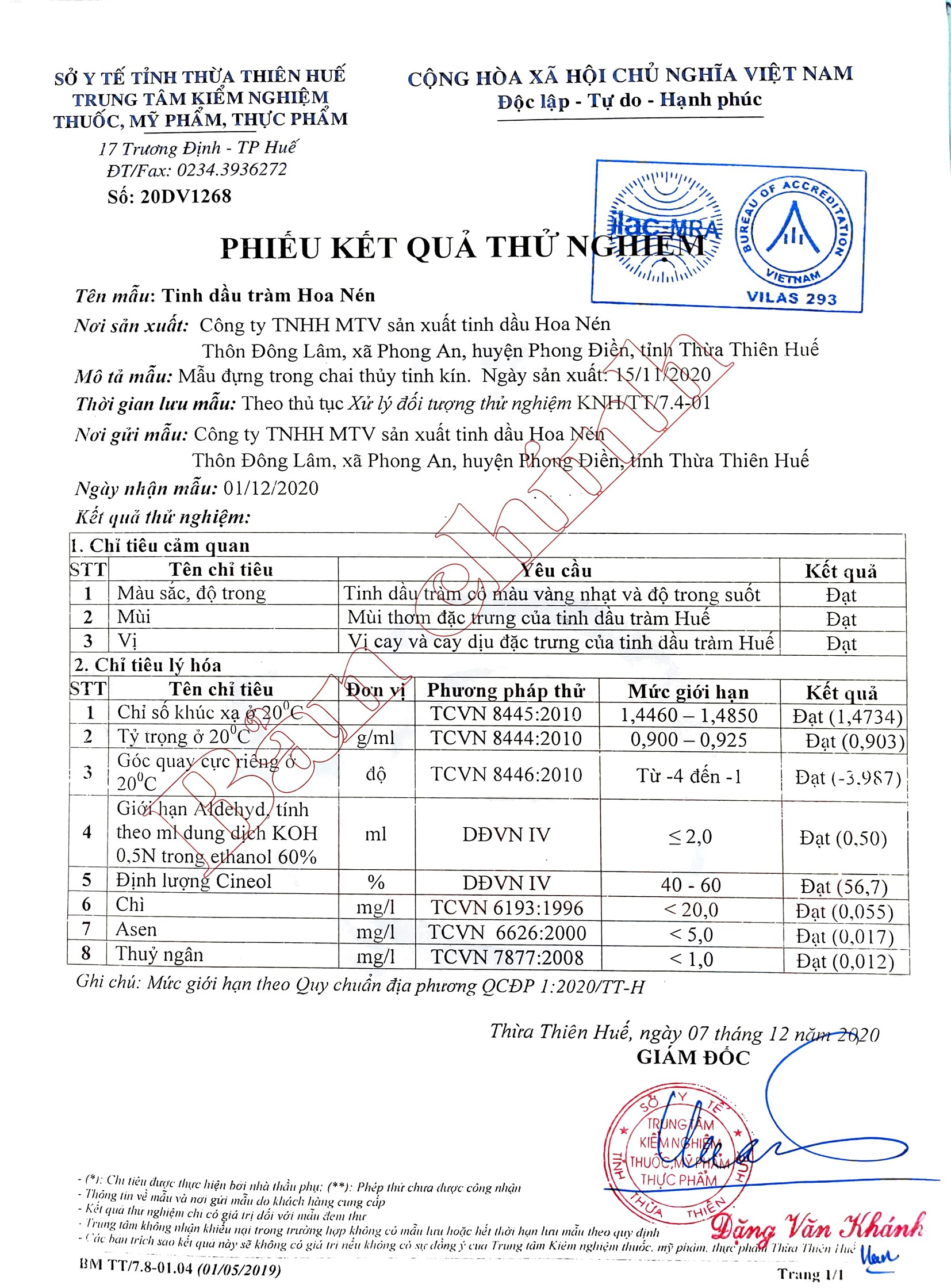Sản phẩm Tinh dầu tràm của Công ty TNHH MTV Sản xuất Tinh dầu HOA NÉN, được chiết xuất từ 100% cây tràm gió thiên nhiên. Thành phần chính trong tinh dầu tràm là cineol