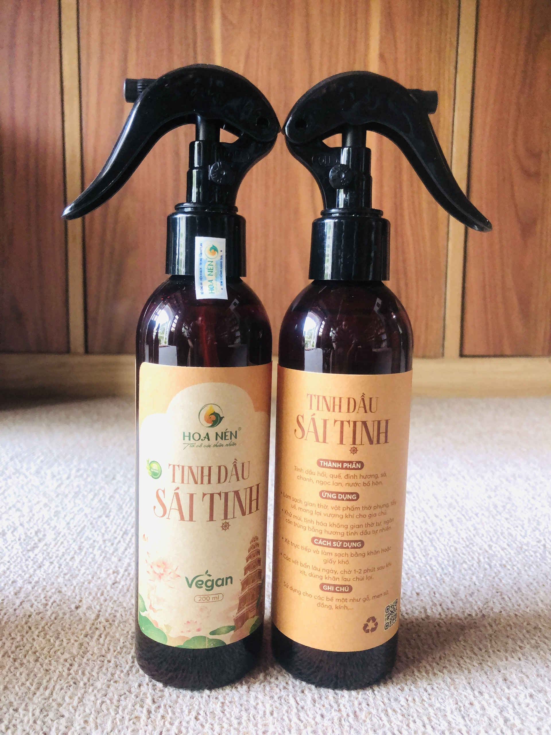 - Hạn sử dụng: 36 tháng SẢN PHẨM THUẦN CHAY MỚI - DÀNH CHO MỌI NHÀ Hoa Nén ra mắt các sản phẩm mới theo chuẩn Vegan: Tinh_dầu_sái_tịnh - chiết xuất từ các thành phần thiên nhiên như tinh dầu hồi, quế, đinh hương, sả, chanh, ngọc lan, nước bồ hòn. ỨNG DỤNG: