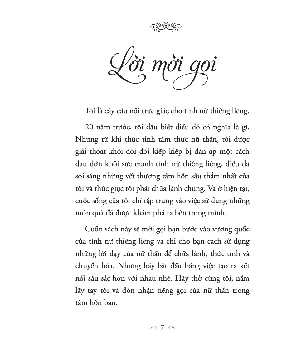 "Bên trong bạn luôn tồn tại một nguồn sức mạnh cổ xưa, đến từ sự kết nối sâu sắc với tính nữ thiêng liêng – một năng lượng nguyên sơ có khả năng chữa lành và dẫn dắt bạn qua mọi giai đoạn của cuộc đời."