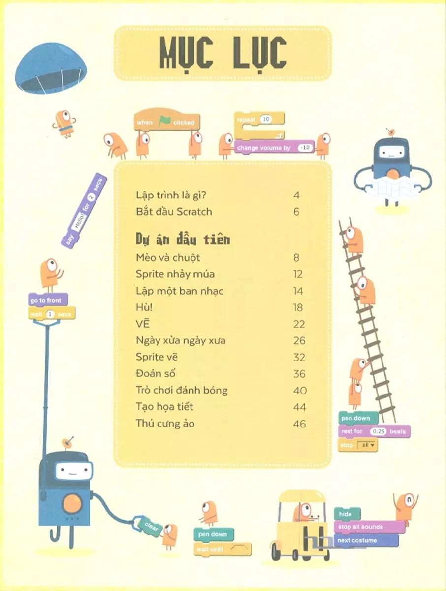 Mua tại TiktokCẩm nang hướng dẫn hoàn chỉnh và đơn giản nhất dành cho bạn trẻ bắt đầu học lập trình Ngôn ngữ lập trình Scratch đặc biệt phù hợp cho bạn trẻ mới học, vì tính tương tác trực quan, đồ họa sống động, ra sản phẩm liền tay mà vẫn đảm bảo khoa học và liên thông tri thức sau này. Chỉ cần nắm và kéo các khối lệnh đầy màu sắc có sẵn để lắp ghép thành một kịch bản điều khiển các đối tượng trên màn hình. Không có những dòng lệnh logic khô cứng và dễ lỗi, những khái niệm kỹ thuật khó hiểu, những quy tắc luật lệ chằng chịt và mệt mỏi trong các ngôn ngữ lập trình kiểu người lớn.