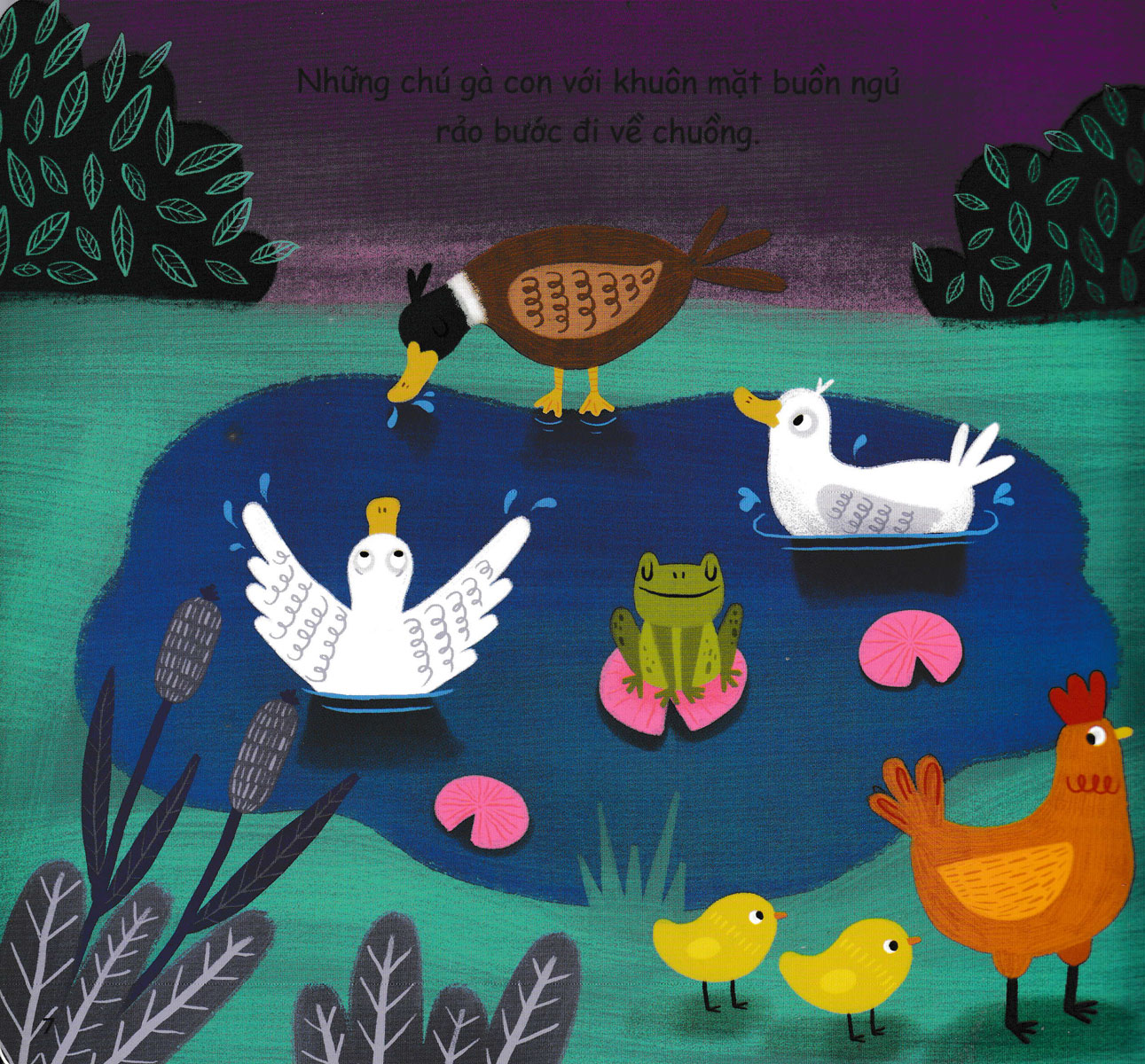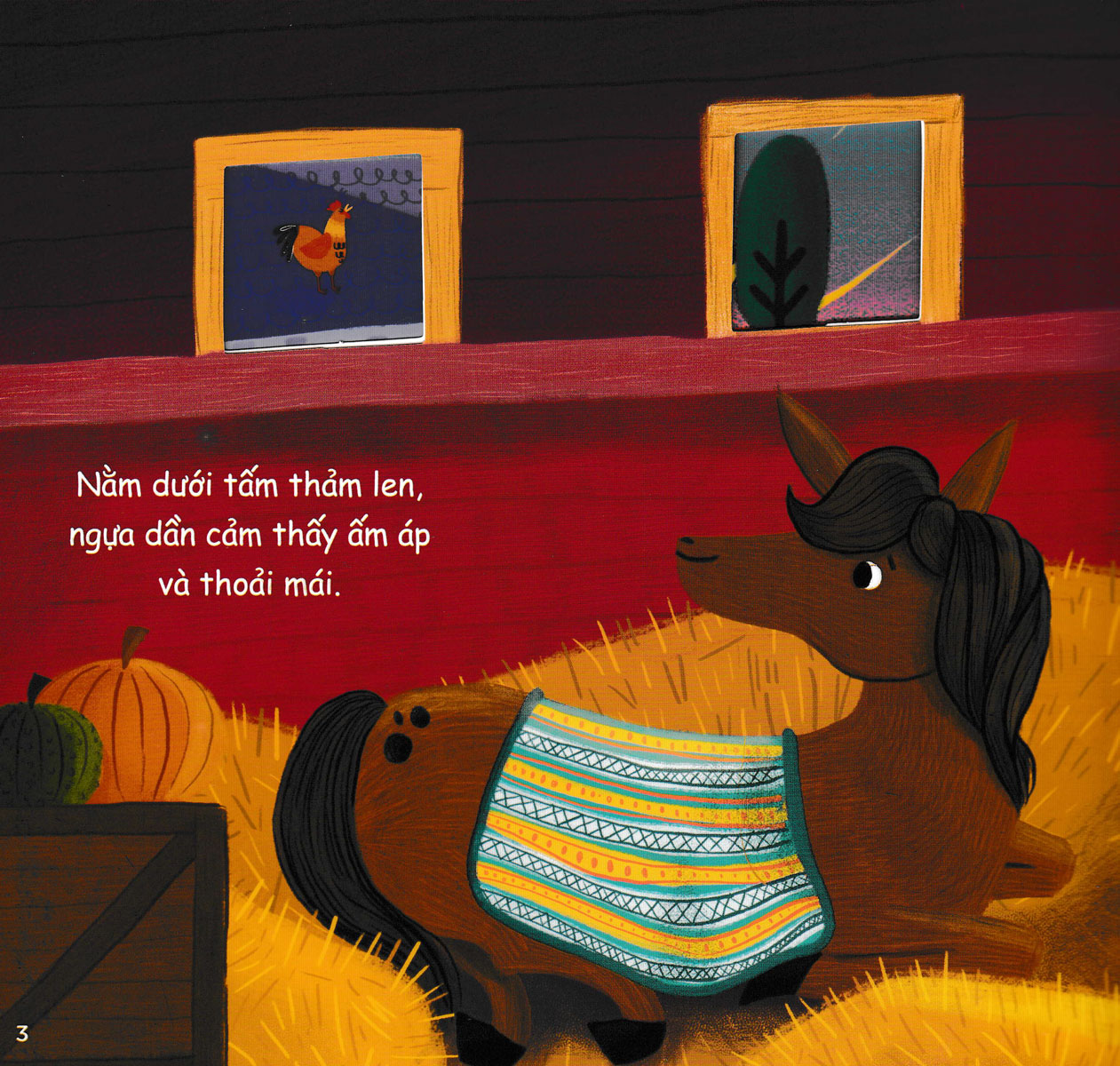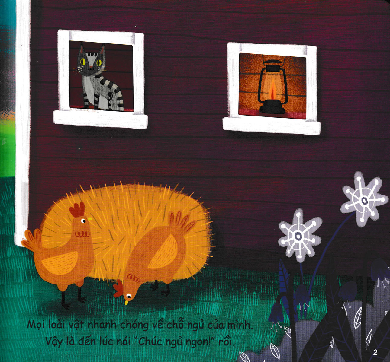 Trong cuốn sách Chúc Ngủ Ngon Nông Trại, các bé cùng cha mẹ sẽ được gặp gỡ những bạn động vật nông trại dễ thương. Sau một ngày dài đầy hứng khởi, các bạn động vật rủ nhau đi nghỉ ngơi nạp năng lượng, chúng nói với nhau “Chúc ngủ ngon!” rồi say giấc mơ những giấc mơ thật đẹp.