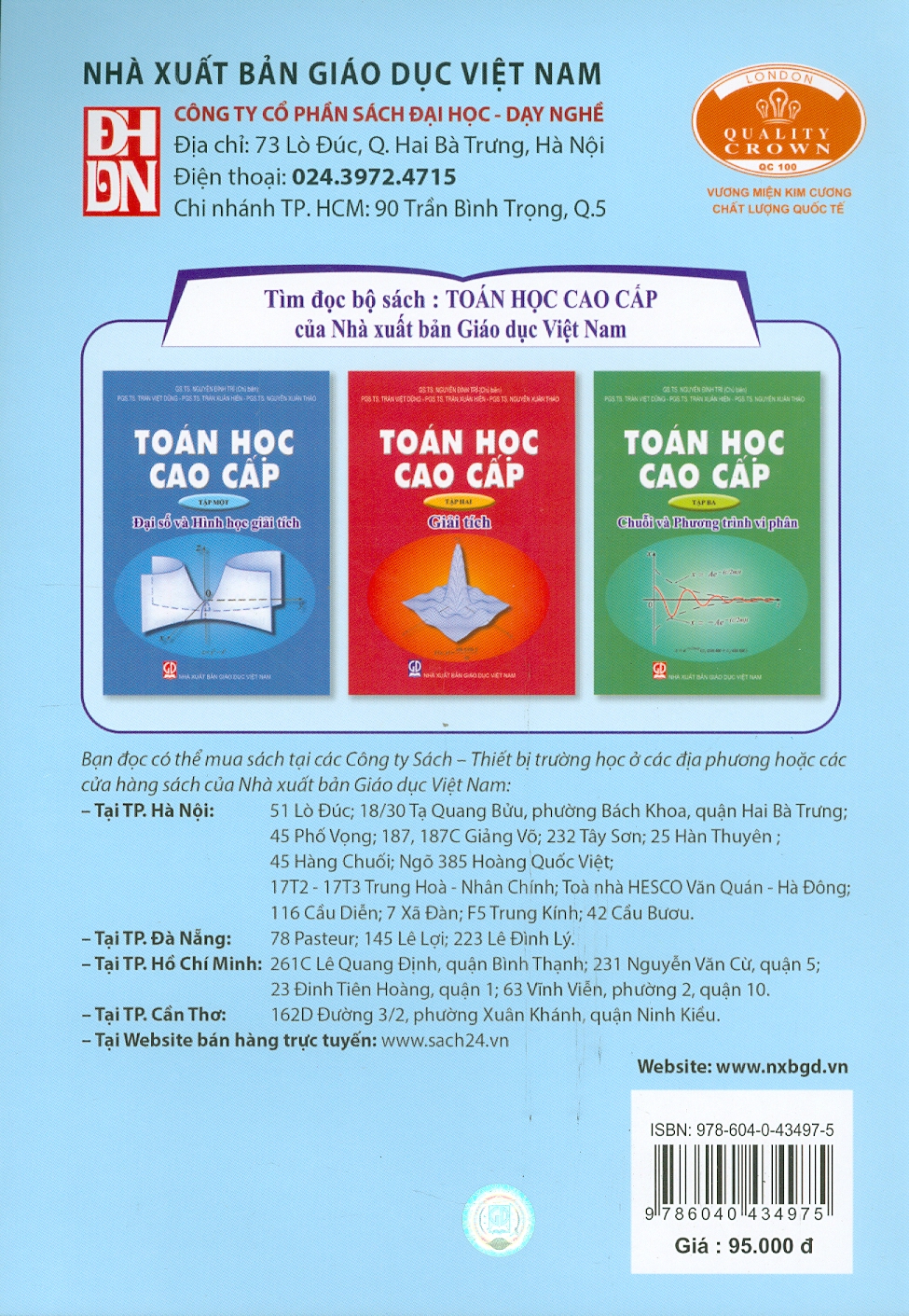 ✨Toán Học Cao Cấp, Tập 1: Đại Số Và Hình Học Giải Tích (Tái bản lần thứ tư, năm 2024)- GS.TS. Nguyễn Đình Trí (Chủ biên), PGS. TS. Trần Việt Dũng, PGS. TS. Trần Xuân Hiển, PGS. TS. Nguyễn Xuân Hào