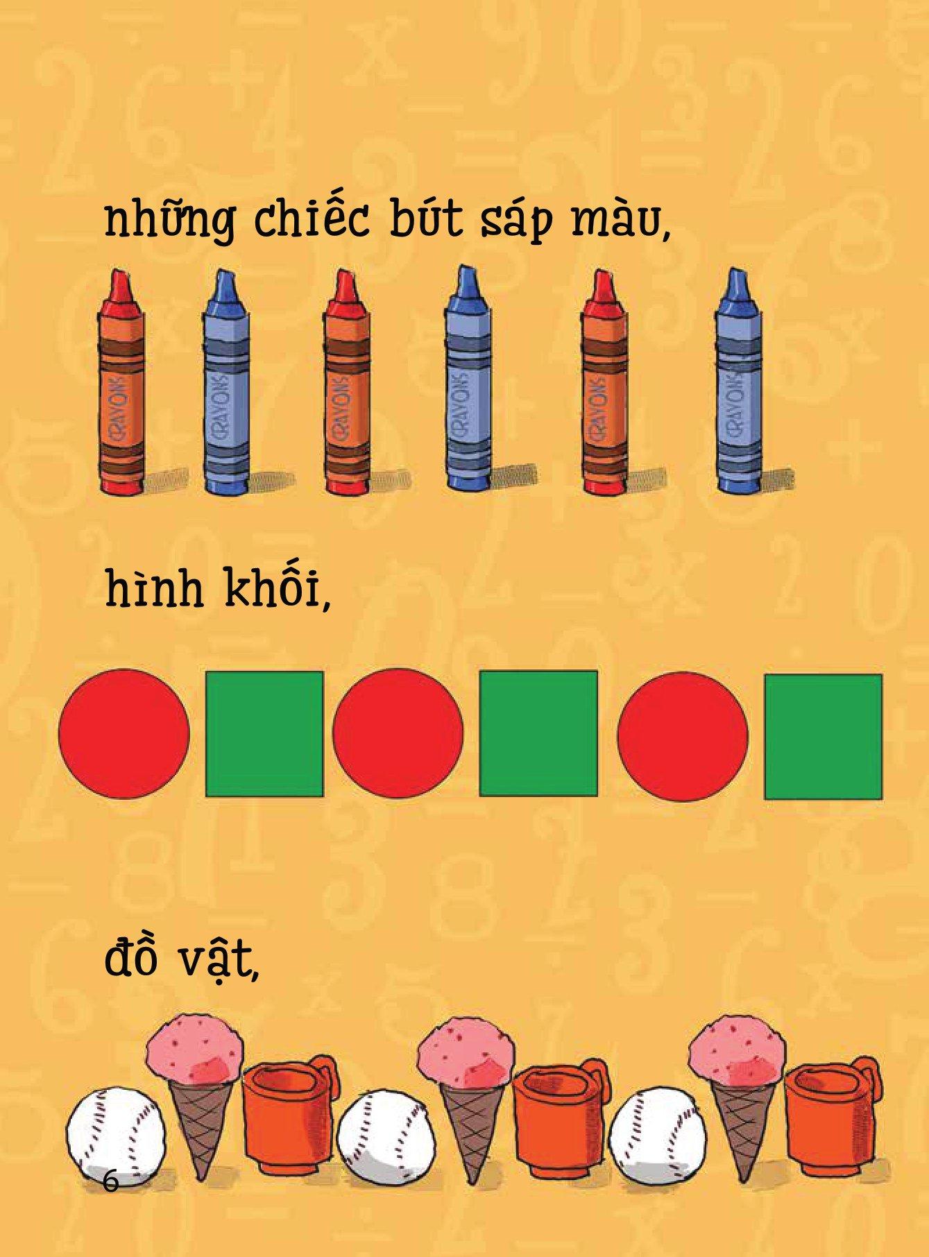 Đỏ, xanh, đỏ… rồi đến màu gì nhỉ?: Giúp bé làm quen với khái niệm sắp xếp theo quy tắc với các ví dụ từ màu sắc, hình dạng, đồ vật gần gũi xung quanh bé.