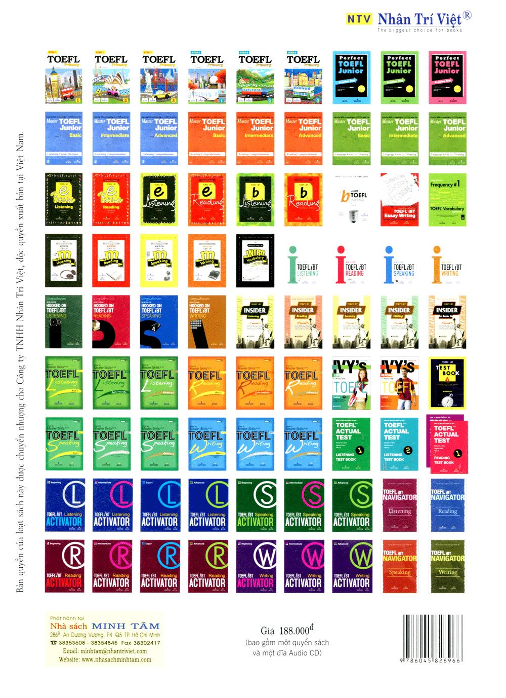 TOEFL iBT ACTIVATOR là bộ sách luyện thi 4 cấp độ được biên soạn nhằm giúp phát triển các kỹ năng về reading, listening, speaking, writing và grammar để nâng cao điểm số trong kỳ