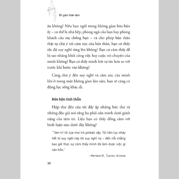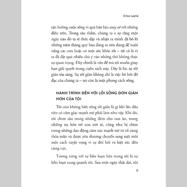 Thông qua cuốn sách của Erica Layne, hãy cùng khám phá cách áp dụng lối tư duy tối giản vào mọi khía cạnh của cuộc sống bằng cách thay đổi cách bạn nghĩ về nhà cửa, sự nghiệp, các mối quan hệ, gia đình và tiền bạc... Với triết lý thực tế, các bài tập và hoạt động đơn giản cùng các chiến lược dễ áp dụng để loại bỏ những phiền nhiễu và căng thẳng không cần thiết, đây là cuốn sách hướng dẫn cần thiết cho bất cứ ai muốn giải tỏa sự lộn xộn về thể chất, tinh thần và cảm xúc.