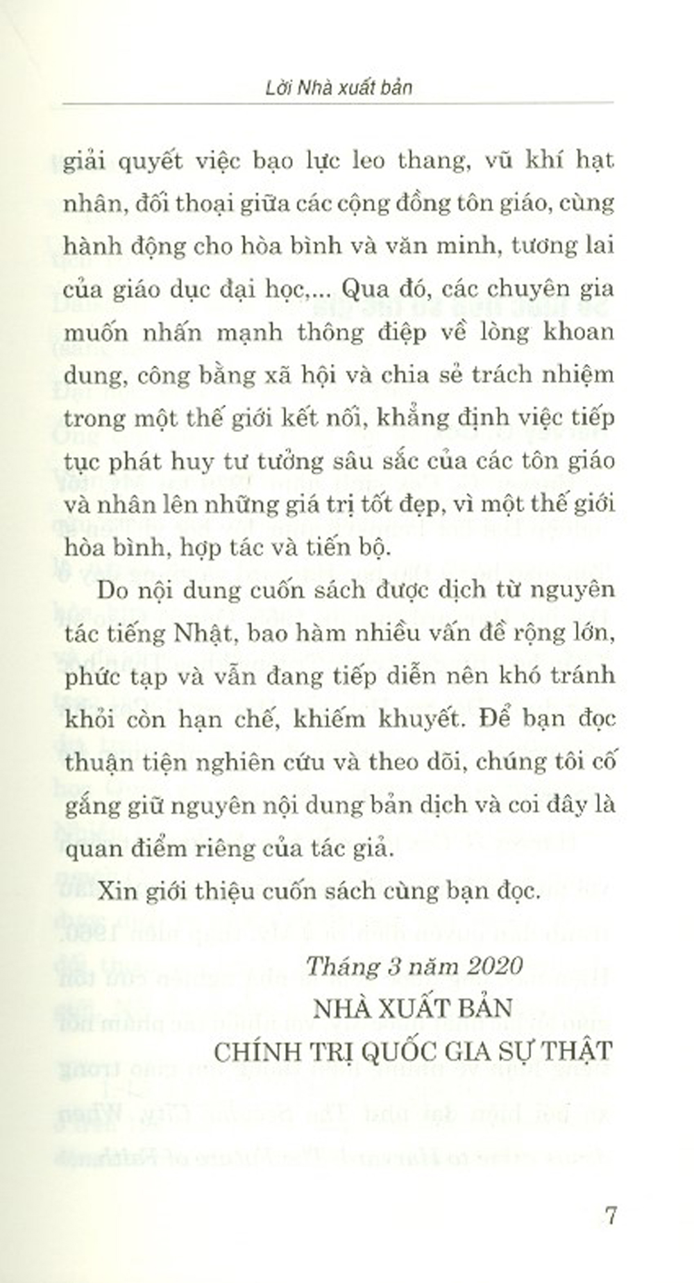 Nội dung cuốn sách được trình bày dưới hình thức một cuộc đối thoại cởi mở và đầy trách nhiệm giữa Tiến sĩ tôn giáo học Harvey G.Cox – chuyên gia nghiên cứu hàng đầu người Mỹ về vấn đề tôn giáo – văn hóa – chính trị và Tiến sĩ Ikeda Daisaku – học giả uyên bác về nhiều lĩnh vực khoa học, nhà văn hóa nổi tiếng ở Nhật Bản cũng như trên thế giới.