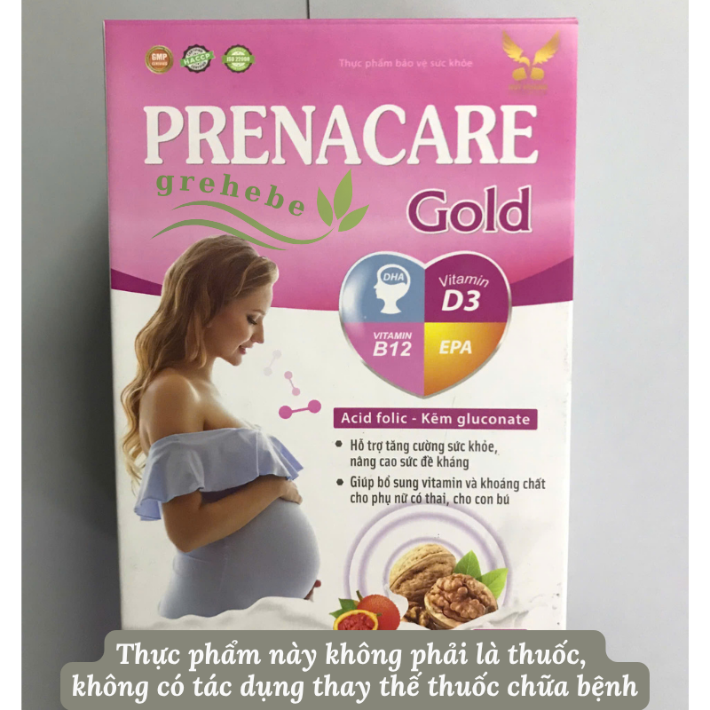 Prenacare Gold có chứa DHA và EPA, dầu gấc, dầu hạt óc chó,… hỗ trợ tăng cường sức khỏe, nâng cao sức đề kháng, bổ sung các vitamin và khoáng chất cho phụ nữ có thai và cho con bú.
