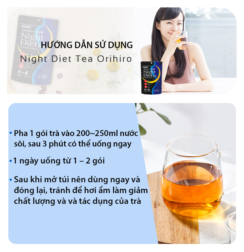 ✨Trà đốt mỡ và kiểm soát cân nặng Night Diet Tea Orihiro Nhật Bản thải độc cơ thể, cải thiện chất lượng giấc ngủ gói 24 túi lọc JN-OR-NI01
