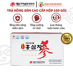 Trà Hồng Sâm Daedong Korean Red Ginseng Tea được sản xuất với nguyên liệu chính là hồng sâm Hàn Quốc 6 tuổi, đã được chọn lọc nghiêm ngặt và tinh luyện dựa trên công nghệ tiên tiến. Trà Hồng Sâm Daedong thích hợp với những người già thích uống trả giúp tăng cường sức khỏe, người làm văn phòng muốn giảm căng thẳng mệt mỏi, đặc biệt sản phẩm còn giúp hỗ trợ tăng cường sức khỏe, cải thiện trí nhớ…