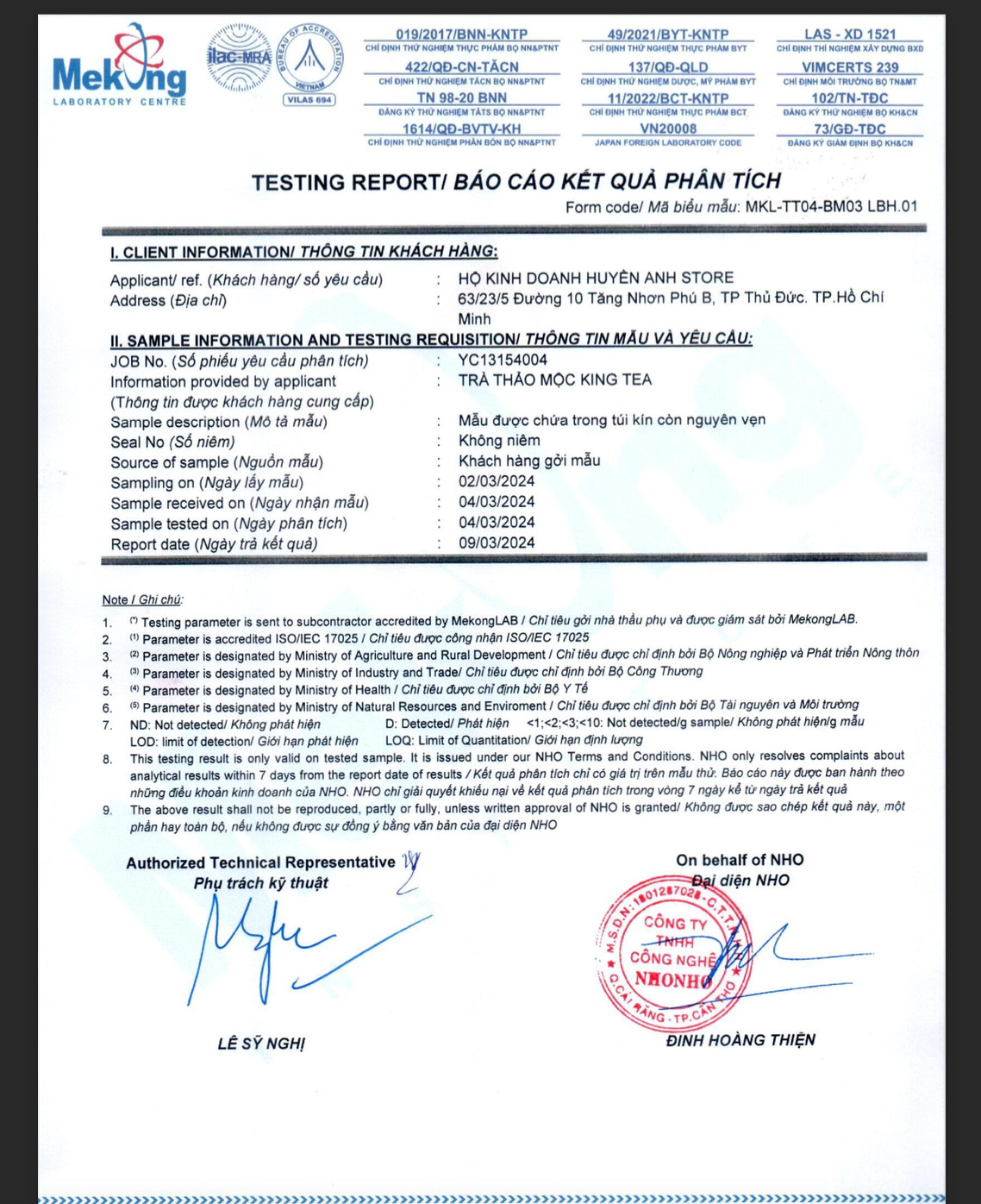 Trà thảo mộc bảo vệ sức khỏe do Hộ Kinh Doanh Huyền Anh Store chịu trách nhiệm sản xuất và phân phối Trà Thảo Mộc Kingtea có thành phần gồm: Trà dây, Cỏ ngọt, Hoa nhài,