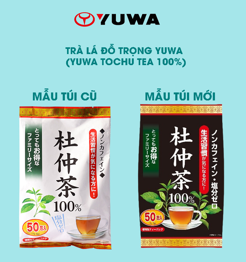 Trà Yuwa được làm từ 100% lá đỗ trọng tự nhiên, sấy khô và được sản xuất trên dây chuyền hiện đại đáp ứng đầy đủ tiêu chuẩn của Tổ chức Y tế và Thực phẩm Nhật Bản, giữ trọn được hương vị và dinh dưỡng của trà.