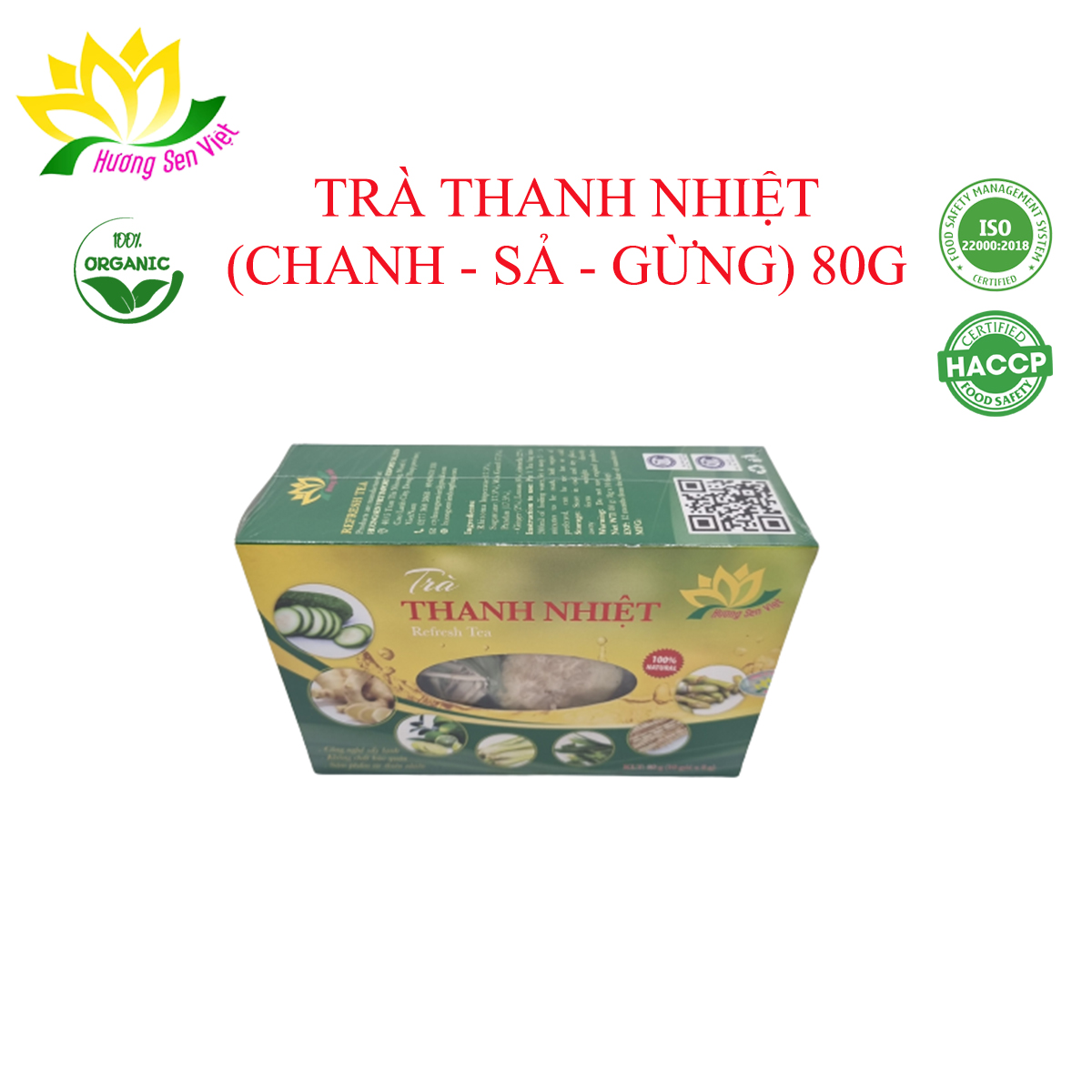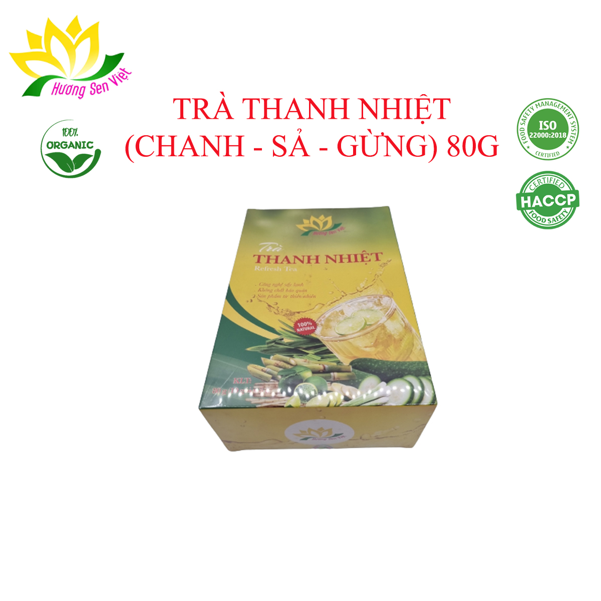 ✨TRÀ THANH NHIỆT (CHANH + SẢ + GỪNG) HỘP 80G - HƯƠNG SEN VIỆT
