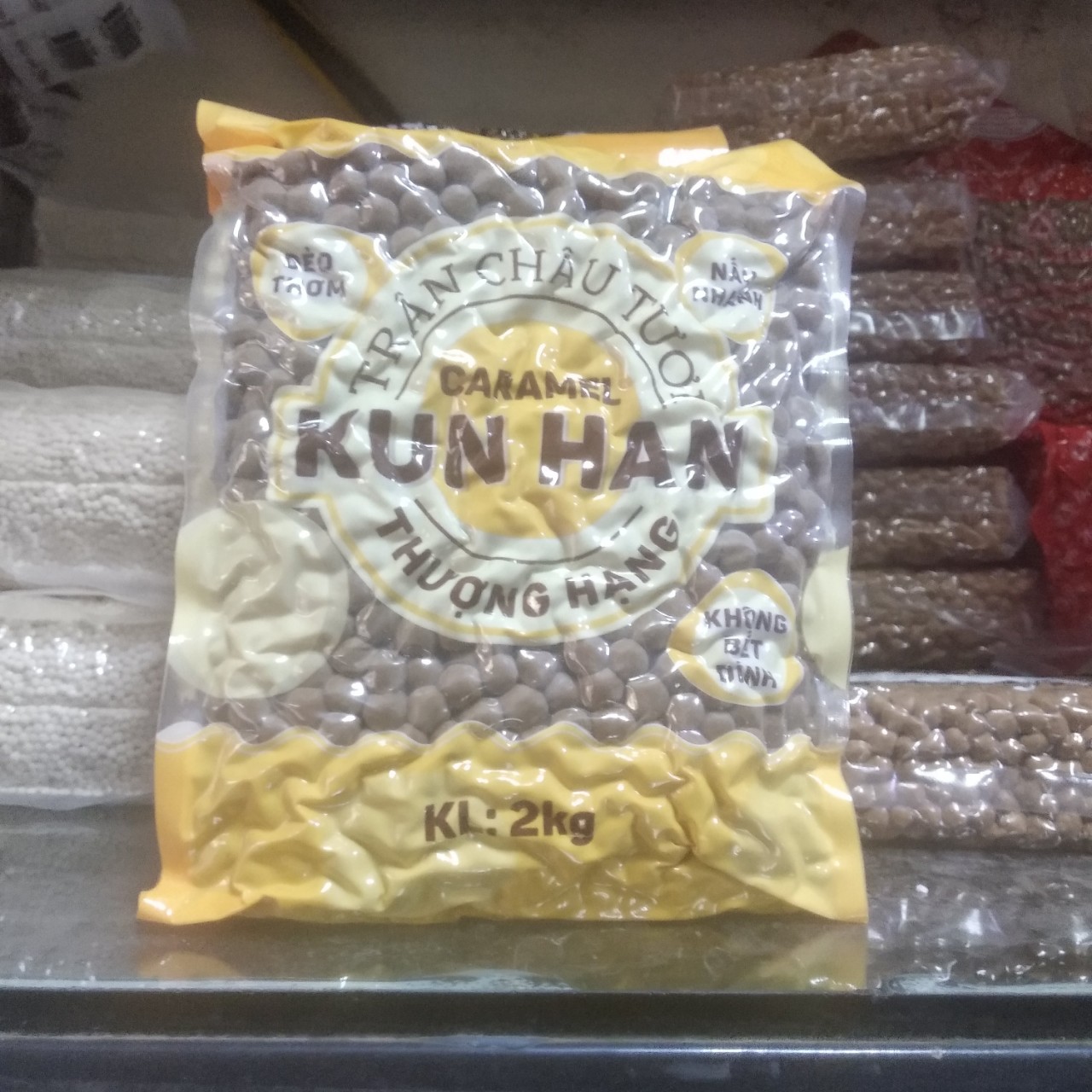 Trân Châu Tươi KunHan Thượng Hạng Caramel – Hạt Trân Châu Đen – Hương Đường Đen KLT: 1 túi/2kg Thành phần chính: Tinh bột sắn cao cấp, ngoài ra kết hợp thêm với những Hương