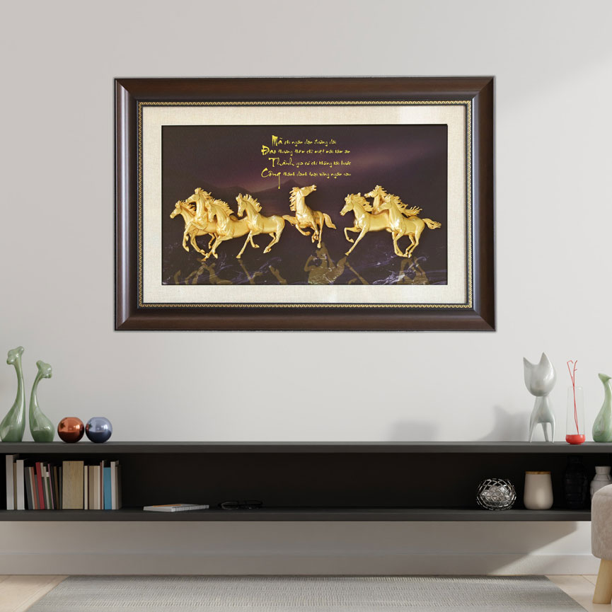 Tranh Bát Mã truy phong (Tranh Mã Đáo Thành Công) do Golden Gift Việt Nam chế tác được mạ vàng thật bằng phương pháp điện phân.
