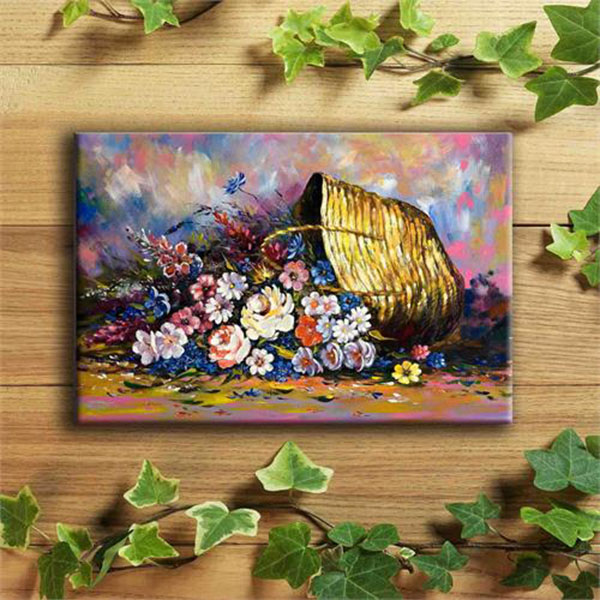 - Bức tranh vẽ một giỏ hoa đầy màu sắc với bố cục đẹp mắt, cách phối màu tạo cho bức tranh từng mảng sáng tối thật hài hòa . Bức tranh sẽ làm cho không gian gia đình bạn thêm phần sống động và đầy sắc màu.