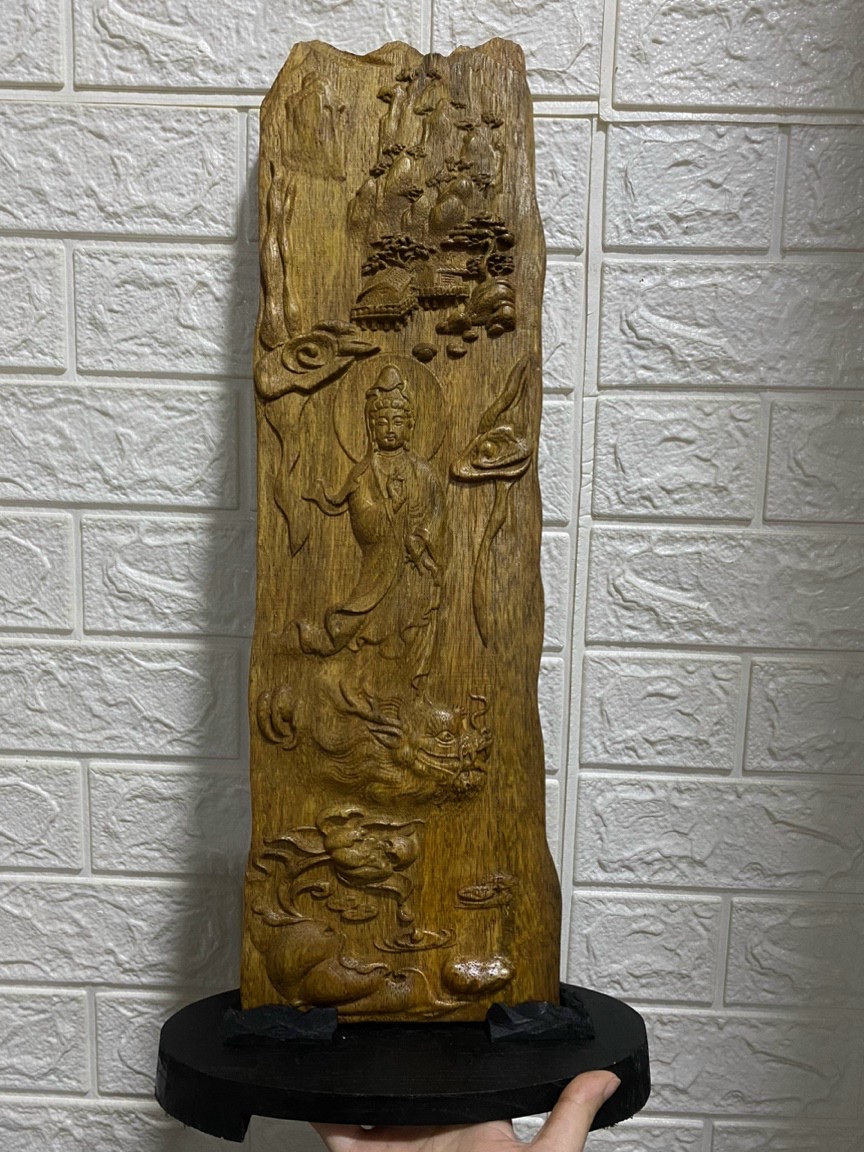 ✨Tranh chạm khắc phật Bà Quan Thế Âm Bồ Tát bằng gỗ trầm hương