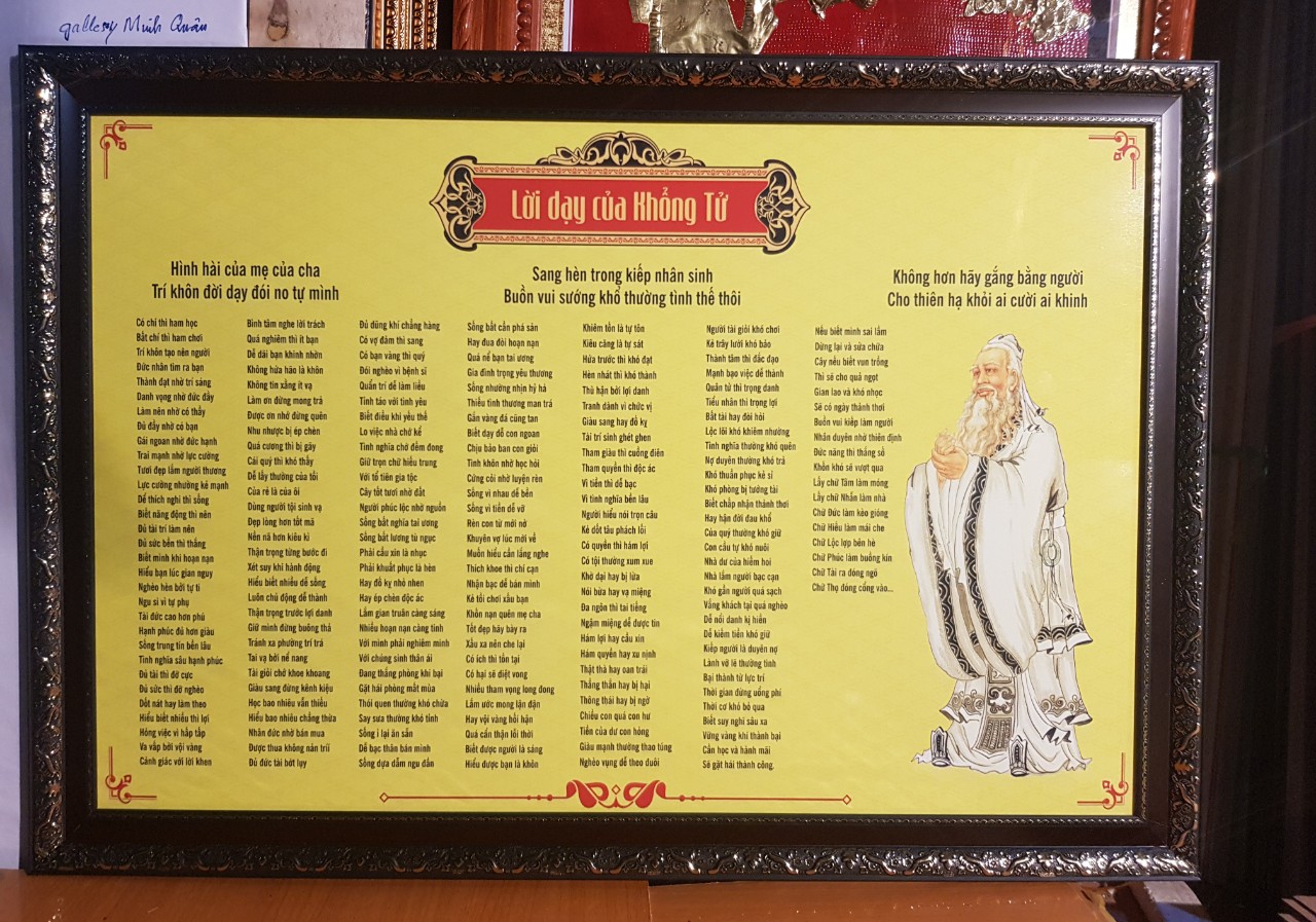 Tranh lời dạy khổng tử gỗ lụa 50x75, in công nghệ ảnh, ko phai màu