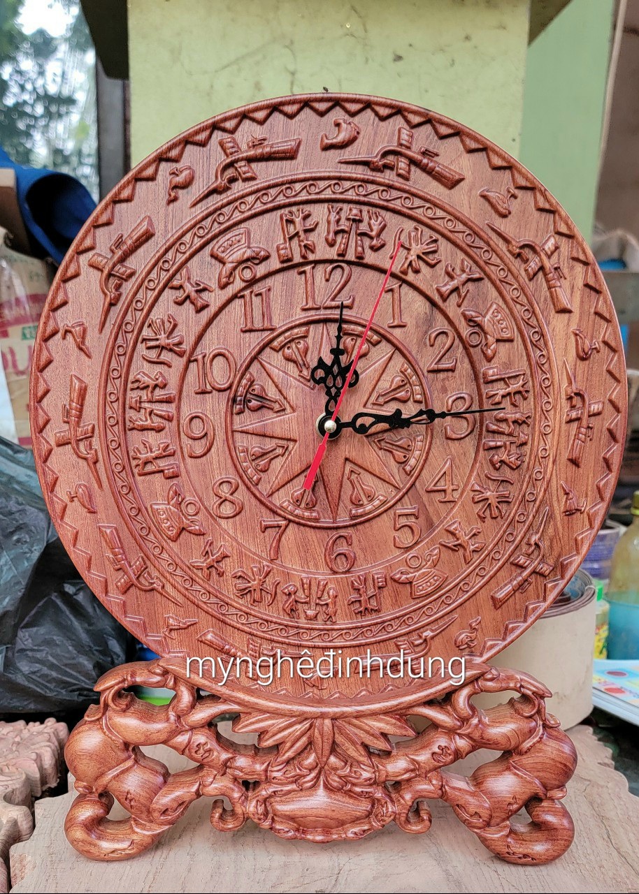 Mua tại TiktokTranh đồng hồ khắc trống đồng đông sơn trang trí phòng khách được làm bằng chất liệu gỗ hương đá tự nhiên 100% Kt mặt tròn 27 dầy3cm+ chân đế cao 10cm=tổng cao cả đế lẫn tranh =37cm Đồng được khắc nhiều mẫu khác nhau ,khách muốn được mẫu nào nhắn tin cho nhà bán ,nhà bán nhận được sẽ gửi đúng mẫu. Tranh đồng hồ được chạm khắc nổi tỉ mỉ ,tinh xảo kỳ công. TỪ NHỮNG NGƯỜI THỢ GIÀU KINH NGHIỆM CŨNG NHƯ TAY NGHỀ CAO TRONG LÀNG NGHỀ TRUYỀN THỐNG.
