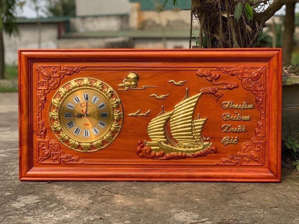 Tranh đồng hồ treo tường thuận buồm xuôi gió bằng gỗ hương kt 48×108×4cnTranh đồng hồ treo tường thuận buồm xuôi gió bằng gỗ hương kt 48×108×4cn