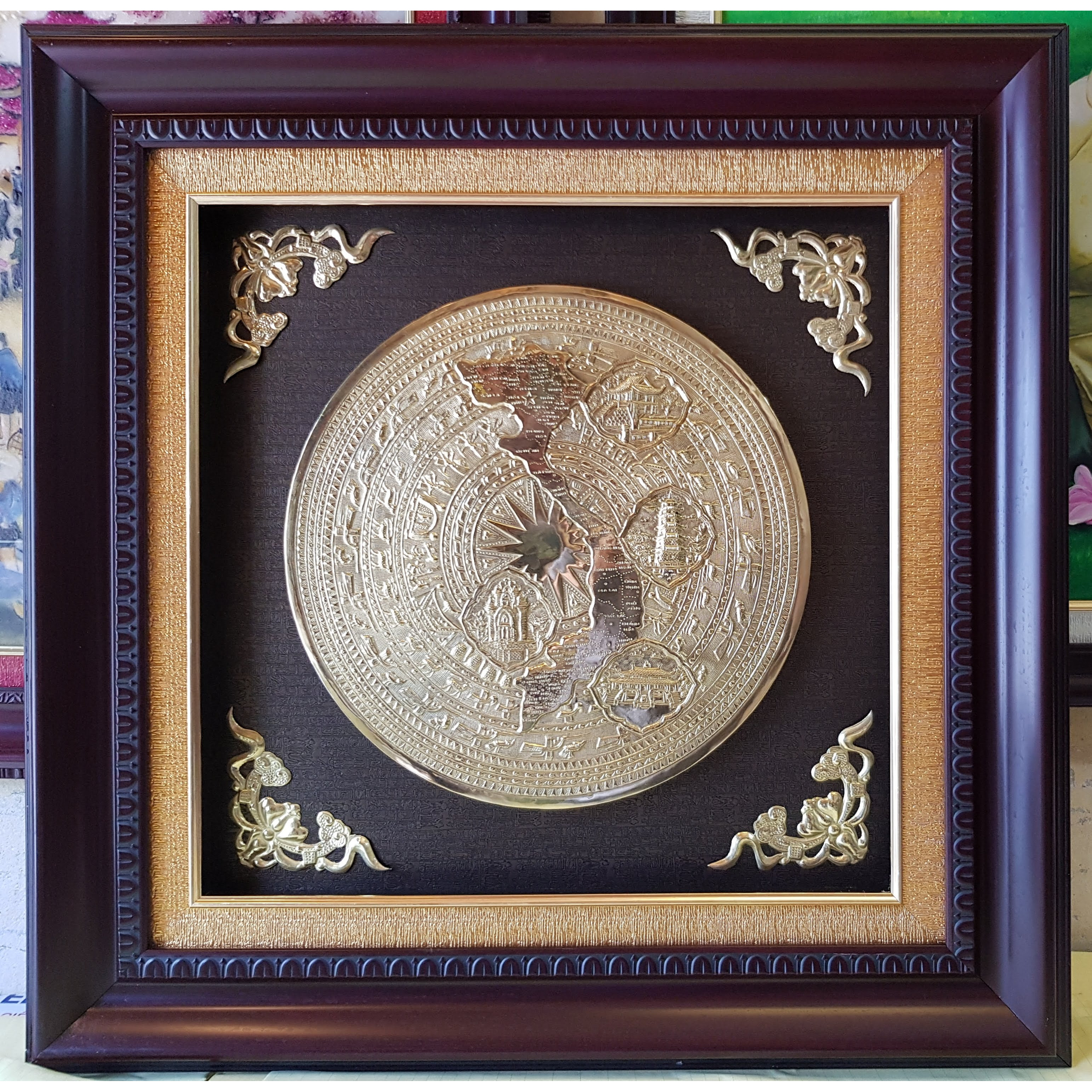 Báo giá bức tranh Cội Nguồn Quê Hương bằng đồng 1m27x2m37 khung gỗ hương đỏ - Đồ Đồng Thành Tâm