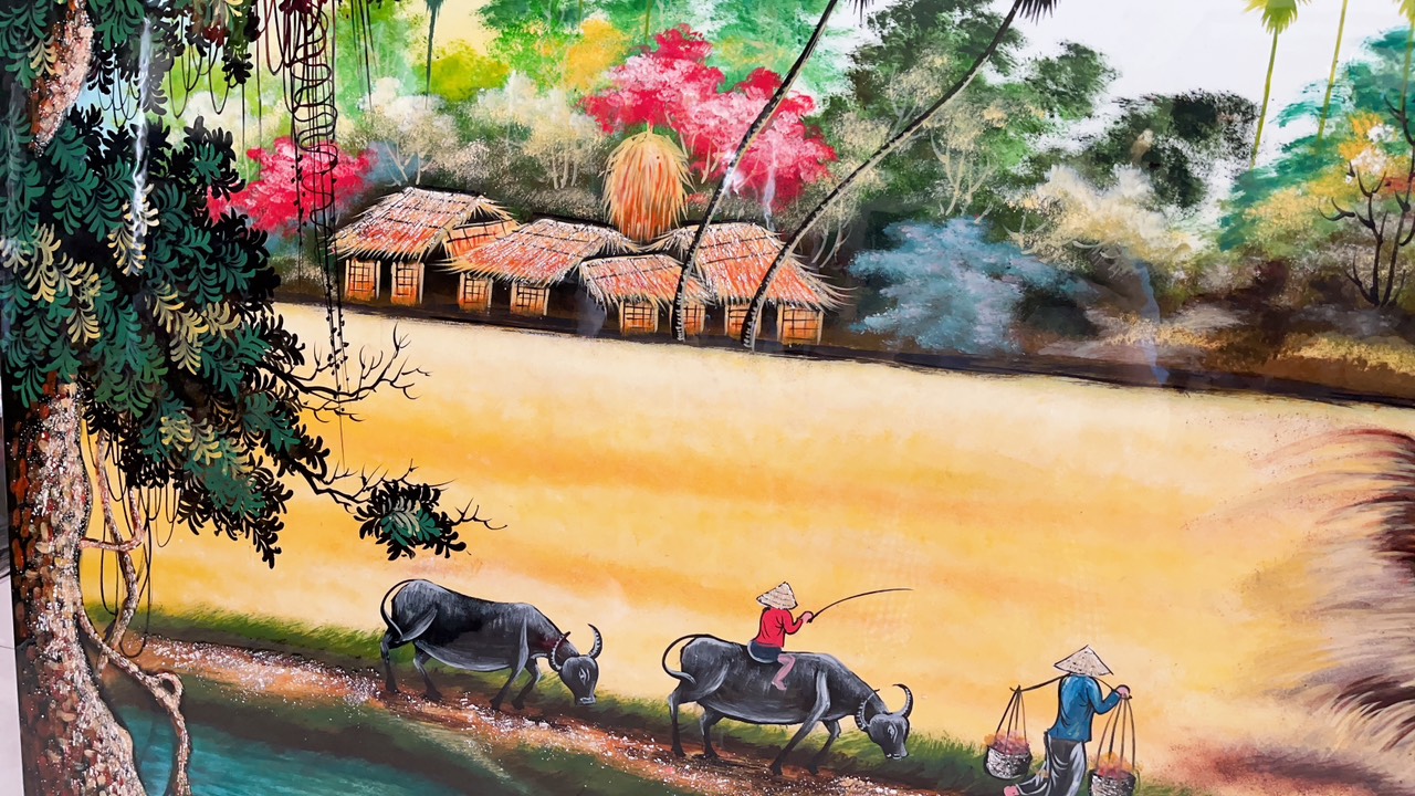 Các bức tranh phong cảnh làng quê Việt Nam với những hình ảnh quen thuộc như gốc đa giếng nước, cậu bé chăn trâu thổi sáo,…Những hình ảnh của làng quê vừa mộc mạc, giản dị lại vừa thể hiện vẻ đẹp thơ mộng, yên bình của làng quê Việt Nam. Những hình ảnh từ tranh làng quê này gợi nhớ cho chúng ta nỗi nhớ nhung mam mác về sự yên bình không thể phai nhòa trong tâm thức mỗi người dân Việt. Xã hội ngày càng hiện đại, những hình ảnh quen thuộc của phong cảnh làng quê Việt Nam dần được thay thể bởi những khu công nghiệp với những nhà máy, máy móc hiện đại,…khiến bạn không được ngắm những hình ảnh đẹp của quê hương thân thương ngày xưa nữa. Chính vì thế, bằng những nét vẽ tinh tế, các họa sĩ đã sáng tạo nên những bức tranh phong cảnh làng quê Việt Nam để giúp bạn có thể lại được thấy những hình ảnh thân thuộc của tuổi thơ.