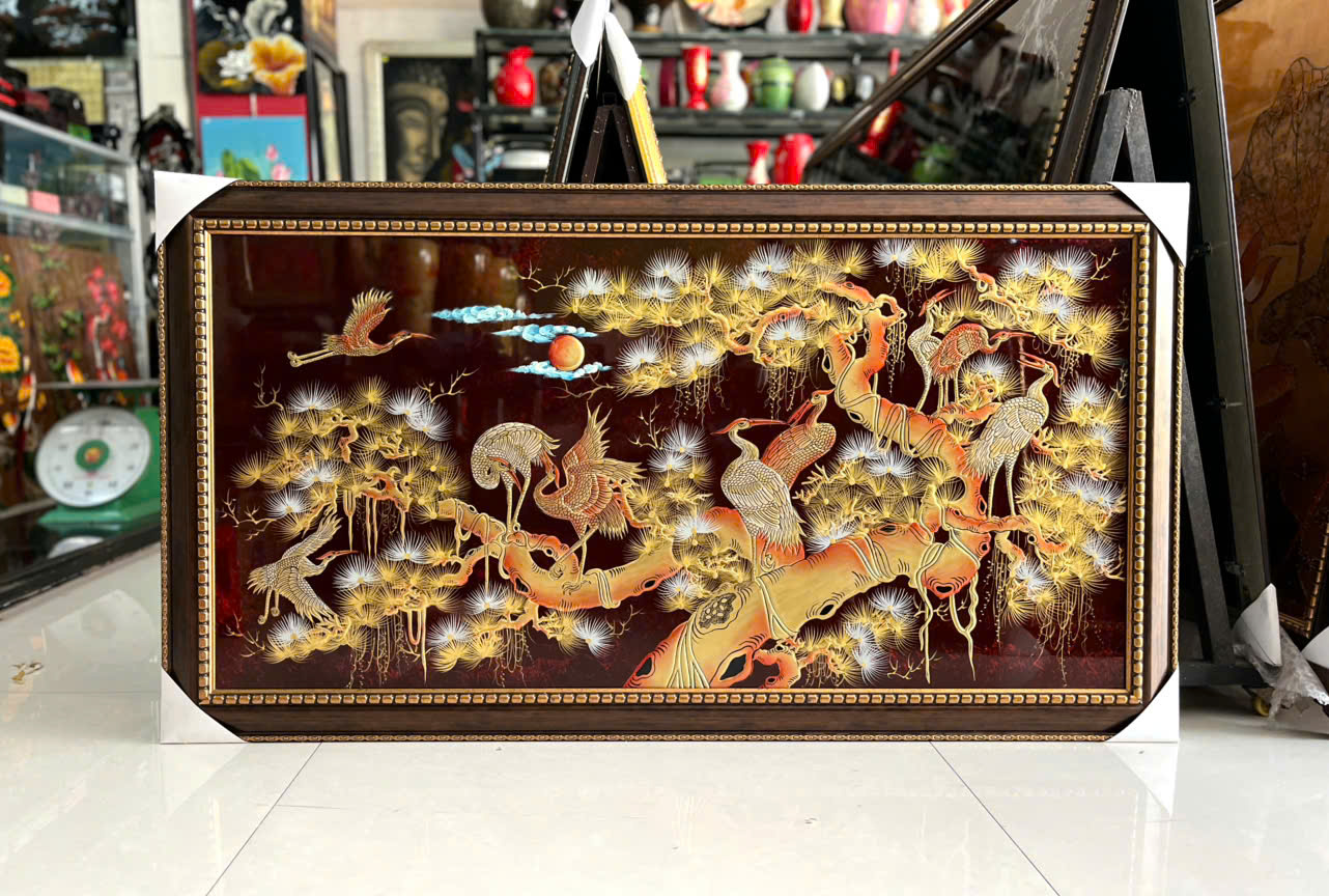 Tranh Sơn mài Tùng Hạc là một trong những bức tranh mừng tân gia được nhiều người ưng ý nhất. Bức tranh sơn mài Tùng Hạc mang một ý nghĩa vô cùng sâu sắc được người Việt Nam coi trọng từ xưa đến nay là biểu hiện cho sự thịnh vượng, trường thọ, có ý nghĩa rất tốt trong phong thủy. Đồng thời mang lại may mắn, bình an cho gia chủ. Ngoài dùng để tặng mừng tân gia, bức tranh Tùng Hạc dùng để tặng khai trương cửa hàng, khai trương khách sạn, tặng cho sếp rất ý nghĩa, thể hiện tấm lòng và sự tinh tế trong từng món quà của bạn.