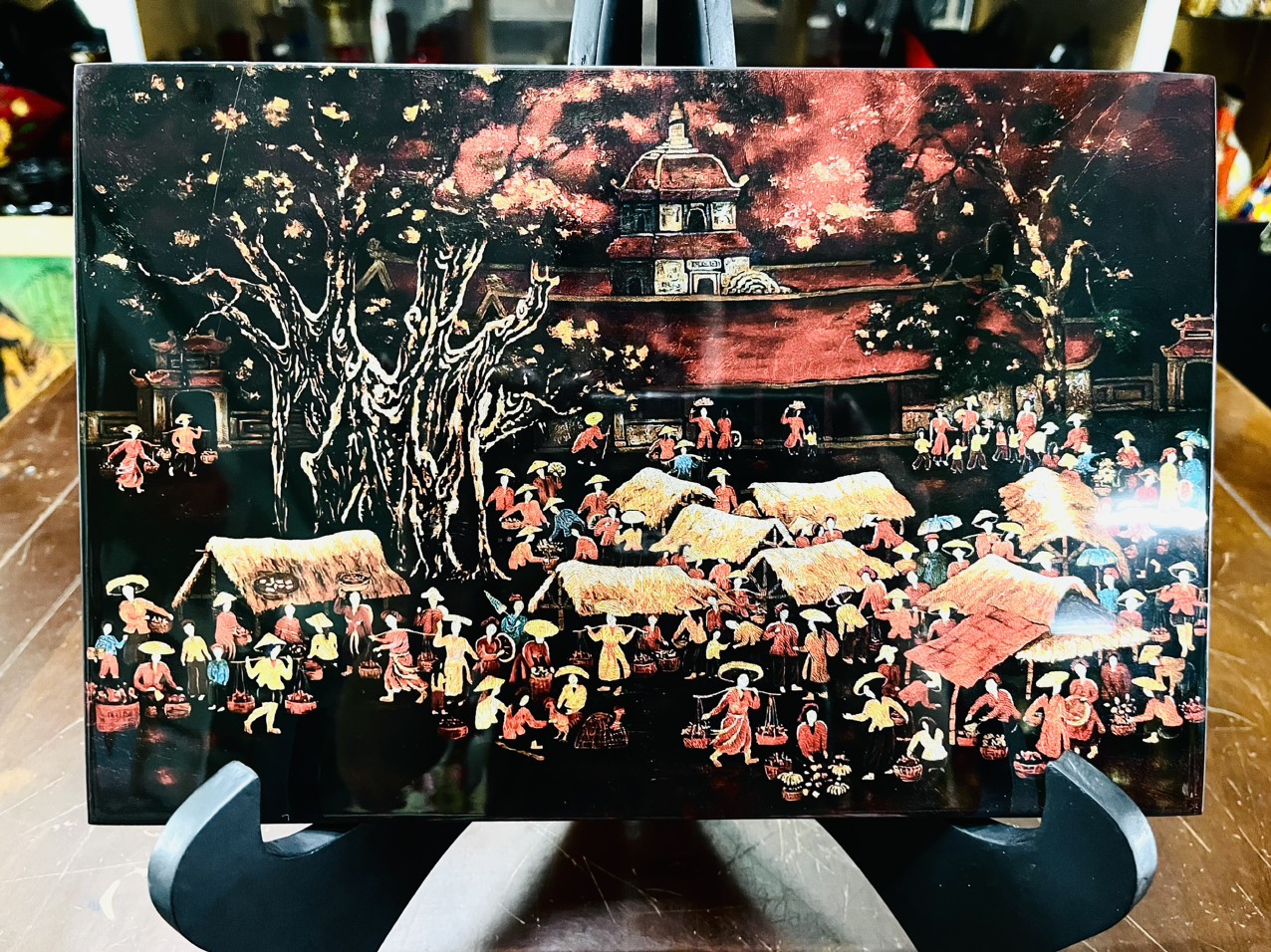 Tranh sơn mài Nam Vang. hàng hiếm.dát vàng 24k.sử dụng sơn nam vang, cô gái đi chợ xuân. 0949932399