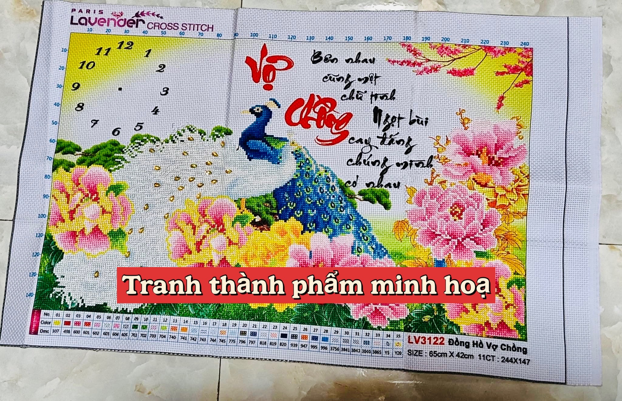 Tên tranh: Tranh thêu chữ thập Đồng hồ vợ chồng LV3122