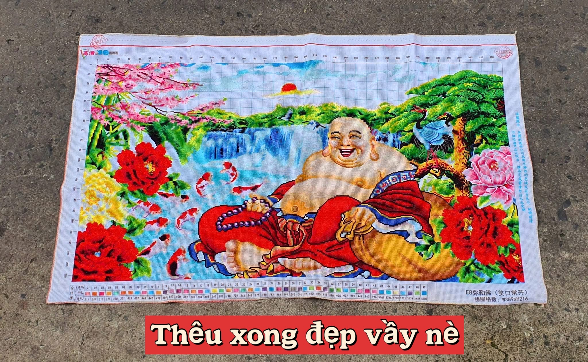 Tên tranh: Tranh thêu chữ thập Phật di lặc E8