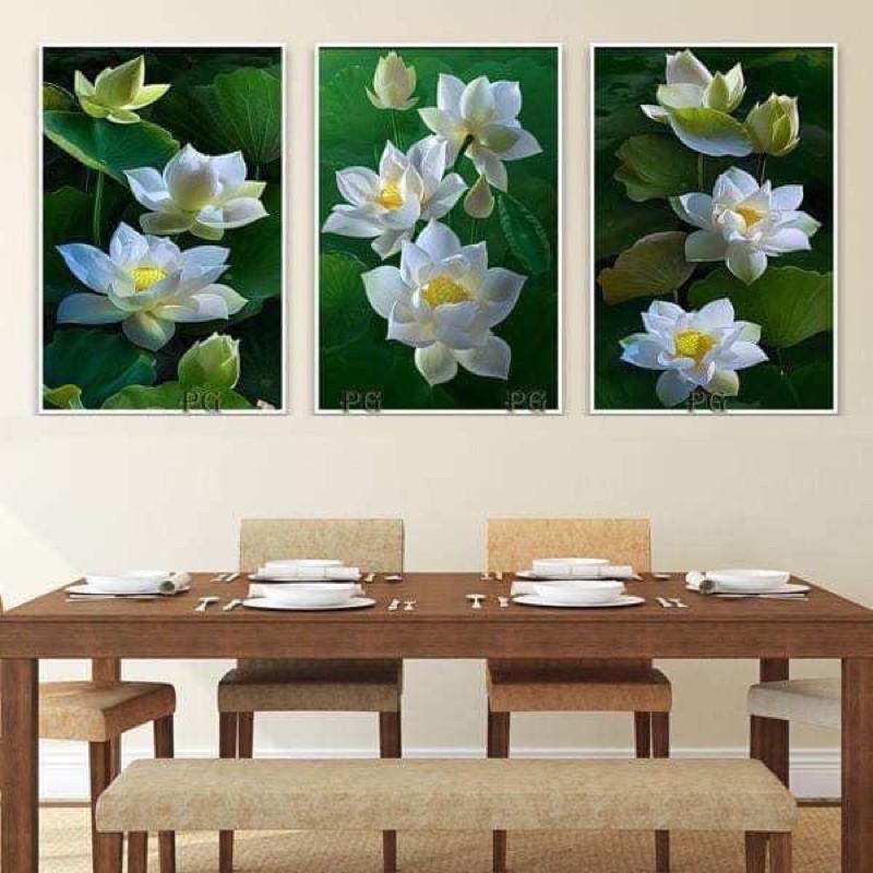 ranh treo tường tráng gương hoa sen và chữa Tâm - Đức - Nhẫn - Kích thước của tranh : Kích thước : 30x60cmx3 tấm - 40x80cmx3 tấm - 50x100cmx3 tấm - Chất liệu :