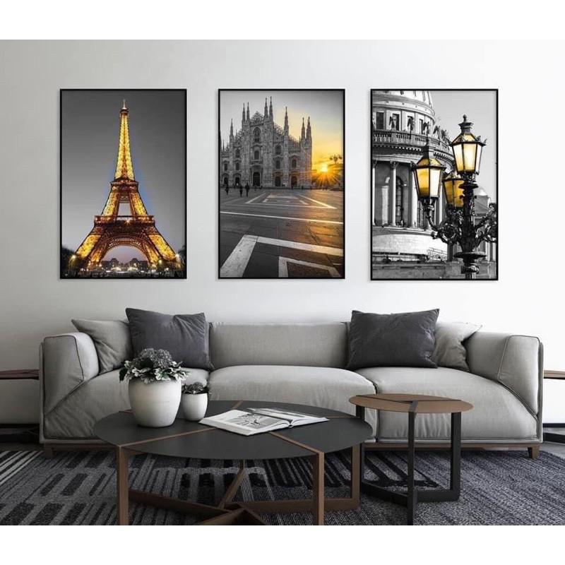 Tranh treo tường cảnh sài gòn - Kích thước của tranh : Kích thước : Size 1: 30x45cmx2 tấm+45x65cmx1 tấm Size 2: 40x60cmx2 tấm + 60x80x1 tấm) Size 3:50x70cmx2 tấm + 70x90x1 tấm) - Chất
