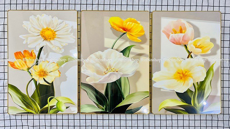 Tranh treo tường hoa khoe sắc - Kích thước của tranh : Kích thước : 40x60cm - 50x75cm - 60x90cm - Chất liệu : Tráng gương - Khách hàng muốn thay đổi sản phẩm ,