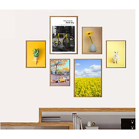 Tranh treo tường 6 bức màu vàng tươi , xinh xắn, hiện đại, nổi bật không gian,  tặng kèm khung màu gỗ,  tranh đơn giản ,hiện đại , Tặng kèm khung và đinh ba chân treo tranh chuyên dụng PVP-TP1523