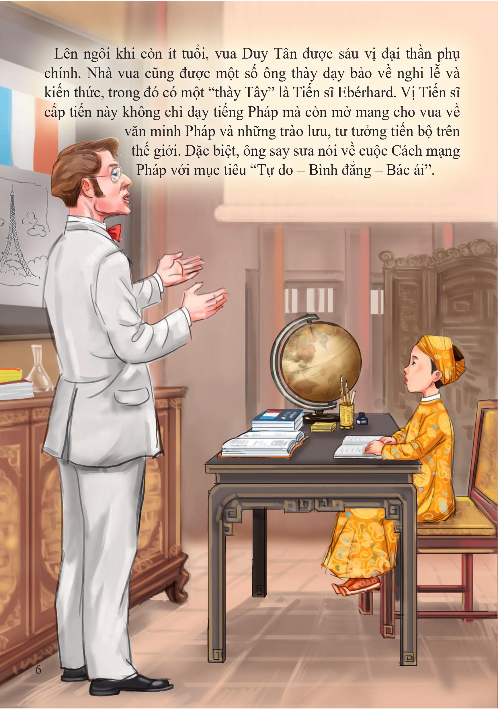 Vua Duy Tân tên là Nguyễn Phúc Vĩnh San, sinh ngày 19-9-1900, lên ngôi lúc tám tuổi, niên hiệu là Duy Tân. Được người Pháp đưa lên ngôi khi còn thơ ấu, nhưng ông lại tỏ thái độ bất hợp tác với chính quyền thuộc địa Pháp. Năm 1916, ông bí mật liên lạc với các lãnh tụ Việt Nam Quang Phục Hội như Thái Phiên, Trần Cao Vâ lên kế hoạch khởi nghĩa. Dự định thất bại và nhà vua bị bắt, đến ngày 3-11-1916 ông bị đem an trí trên đảo Réunion (châu Phi). Ngày 24-4-1987, thi hài ông được đưa từ đảo Réunion về Việt Nam, an táng cạnh lăng mộ vua cha Thành Thái.