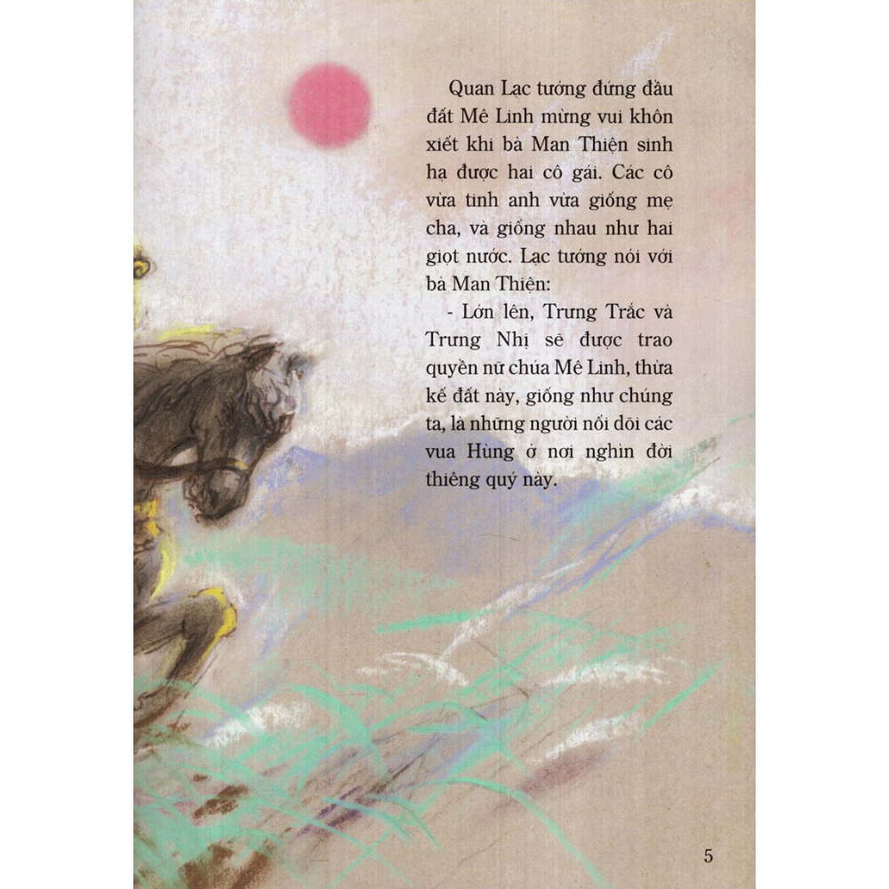 Cuốn sách kể về cuộc đời và sự nghiệp của Hai Bà Trưng, từ khi còn là những cô gái trẻ tài năng cho đến khi trở thành những nữ tướng anh hùng lãnh đạo cuộc khởi nghĩa chống lại quân xâm lược.