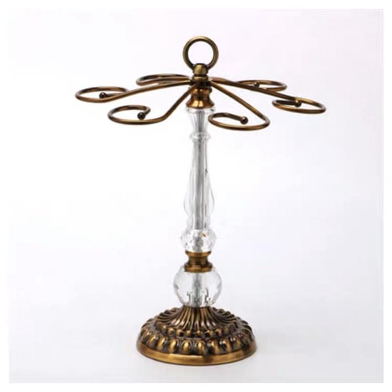 Giá treo 6 ly rượu vang kèm kệ đỡ chai phong cách Châu Âu màu đồng cổ điển. Kệ để ly thiết kế phong cách decor quý tộc sang trọng và quý phái.