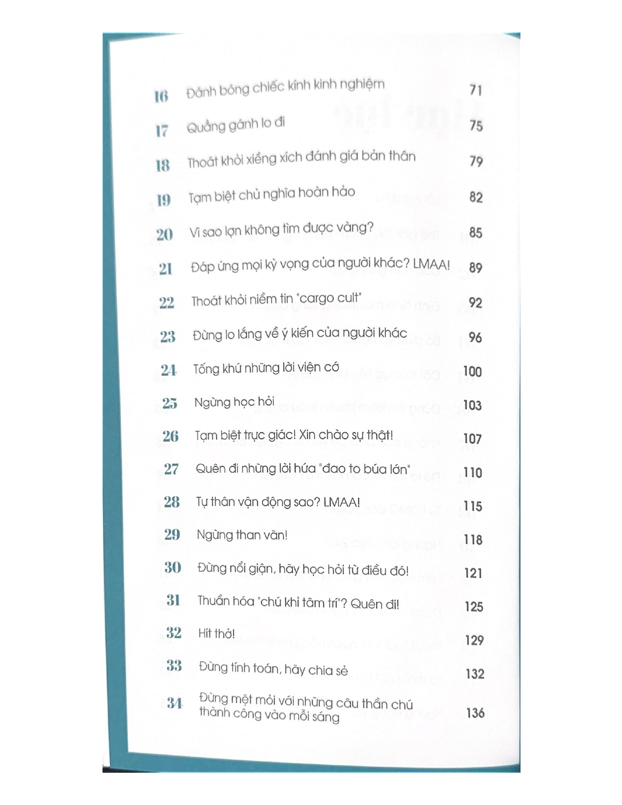 Để thoát khỏi vòng quay khổ sở này, ta phải học cách trở nên tốt đẹp hơn bằng cách thực hành Triết lý LMAA – “Cảm ơn, nhưng không phải hôm nay”. Hãy nói “LMAA” đối với những tham vọng thái quá khiến chúng ta mất động lực. Hãy nói “LMAA” đối với những đòi hỏi của người khác khiến ta phải sống một cuộc đời không đích thực. Hãy nói “LMAA” đối với những người đang ra sức dạy bảo ta “phải” sống như thế nào. Hãy nói “LMAA” đối với sự thôi thúc khiến ta luôn phải cố gắng sống tốt hơn và nhanh hơn. Hãy nói “LMAA” đối với cảm giác trách nhiệm và bổn phận đang đè nặng lên ta hằng ngày