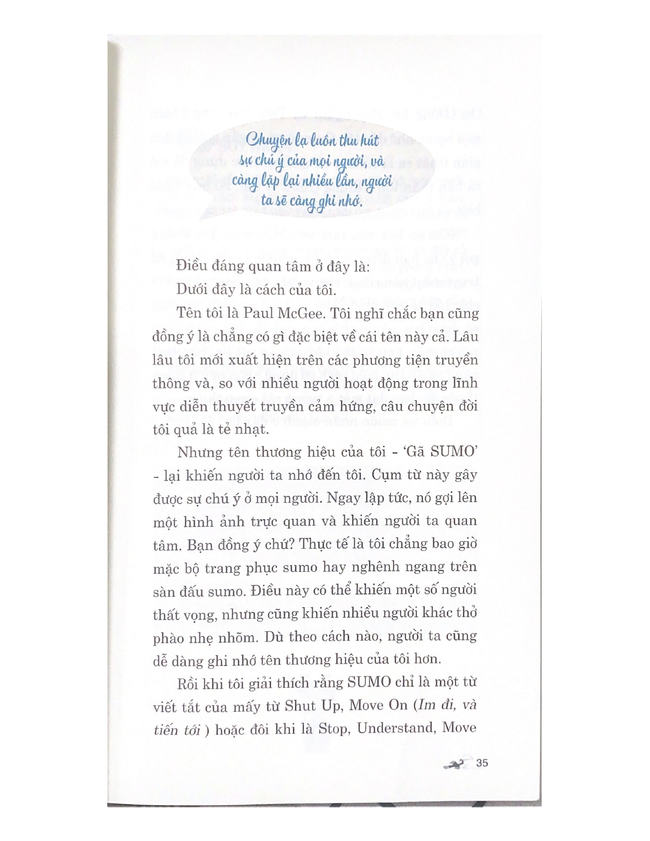 - Giới thiệu sách ĐỨNG LÊN VÀ NÓI SAO CHO MỌI NGƯỜI THỰC SỰ LẮNG NGHE Trong cuốn sách này, diễn giả đẳng cấp quốc tế Paul McGee giúp bạn tránh được những sai lầm phổ biến mà mọi người thường hay mắc phải khi thuyết phục người khác, đồng thời chỉ cho bạn cách giao tiếp sao cho tiếng nói của mình được người khác lắng nghe. Nói hay thổi bay thế giới sẽ hướng dẫn bạn: Vượt qua nỗi lo lắng và thuyết trình như một diễn giả chuyên nghiệp đích thực Thấu hiểu ngôn ngữ cơ thể của bản thân Trình bày rõ ràng và gây được tác động mạnh mẽ Khiến cho khán thính giả phải ngồi thẳng lưng và im lặng lắng nghe khi bạn bước lên sân khấu Bạn không cần đến loa mới có thể khiến người khác lắng nghe. Cầm lấy cuốn bí kíp này để biến thành một diễn giả xuất chúng và gây ấn tượng với khán thính giả!