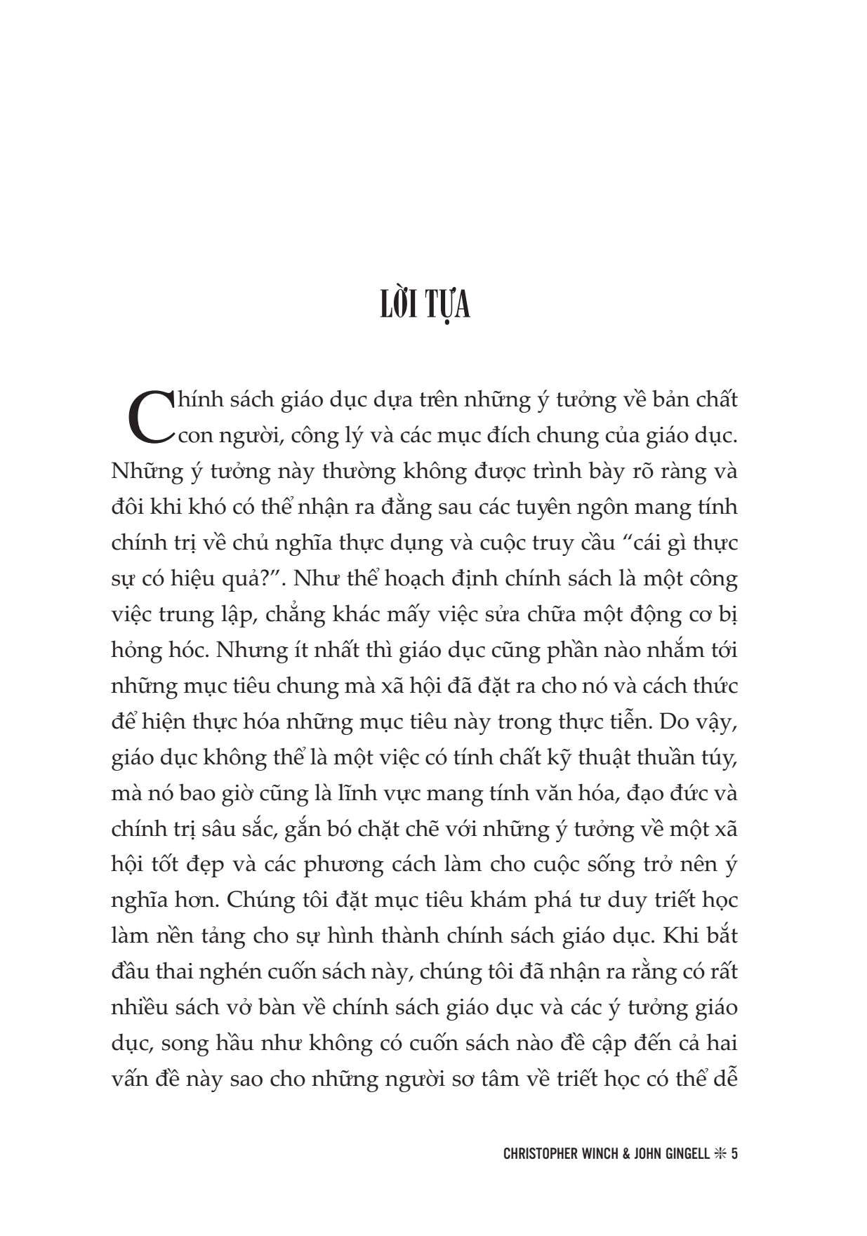 John Gingell là Trưởng khoa Triết học tại Đại học Northampton. Ông đã xuất bản nhiều bài báo trên các tạp chí học thuật uy tín và là đồng tác giả của nhiều tựa sách, bao gồm Modern Political Theory, Philosophy and Educational Policy, In Defence of High Culture. Trong đó tựa sách viết chung với Winch là Philosophy of Education: The Key Concepts [Triết lý Giáo dục: Những Khái niệm cốt lõi] ra đời lần đầu năm 1999 và tái bản năm 2008, đã nhận được sự quan tâm rất lớn từ cộng đồng nghiên cứu giáo dục quốc tế những năm qua.