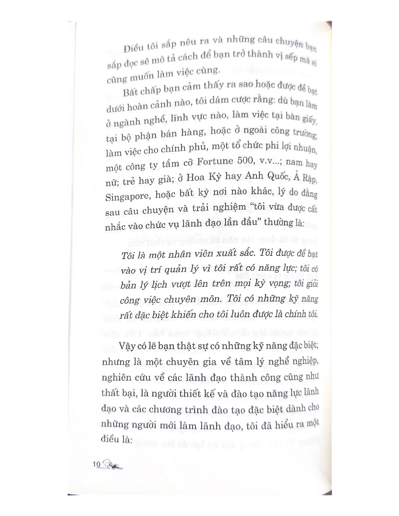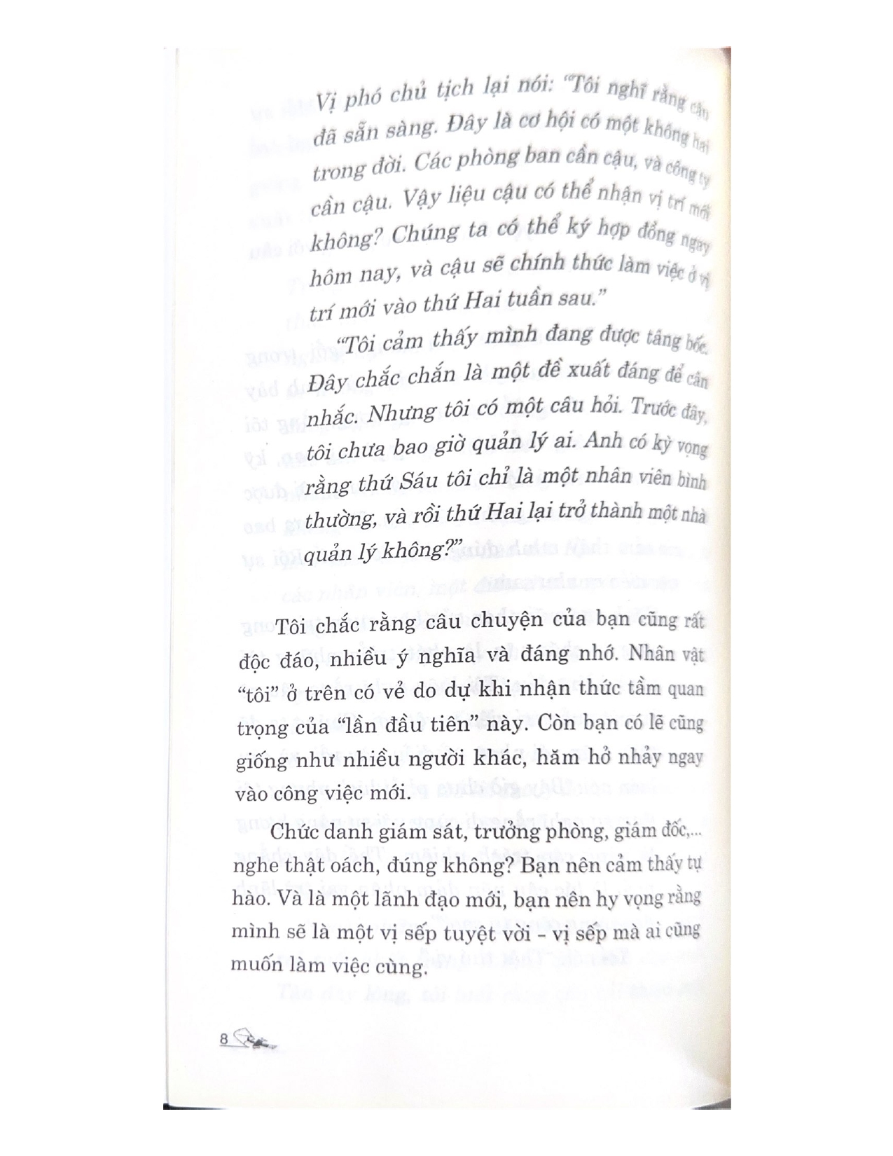 Bạn vừa được đề bạt lên làm lãnh đạo? Và bạn cần phải thay đổi để không bị choáng ngợp cũng như có thể trở thành một vị sếp lý tưởng? Cuốn sách trình bày chi tiết và rõ ràng sáu lĩnh vực mà bạn có thể thay đổi để đạt được mục tiêu thông qua trải nghiệm của chính tác giả, những câu chuyện người thật việc thật và cả những nghiên cứu khoa học nổi tiếng.
