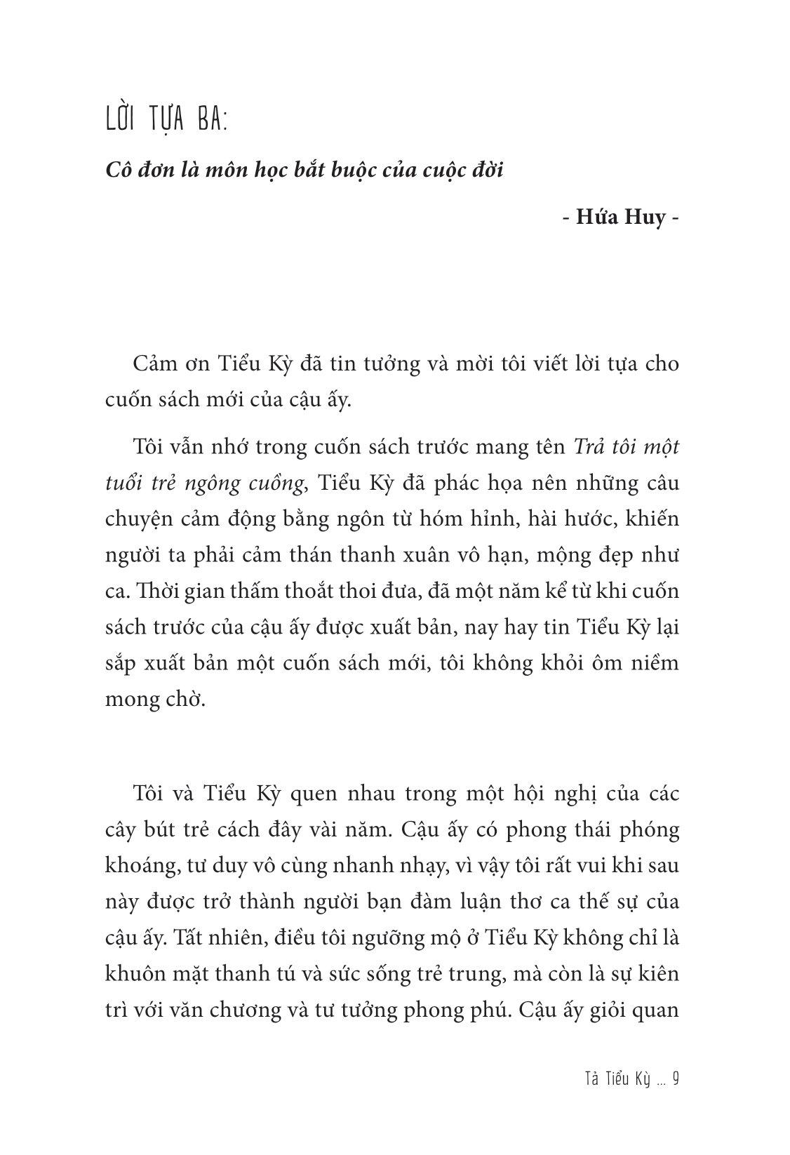 Cuốn sách này sẽ chia sẻ với bạn đọc cách để đối mặt với sự hoang mang, cách thoát ra khỏi cô đơn và khó khăn, cách chuyển hóa cô đơn thành dưỡng chất cho sự trưởng thành, từ đó gặp được phiên bản tốt đẹp nhất của bản thân m.ình.