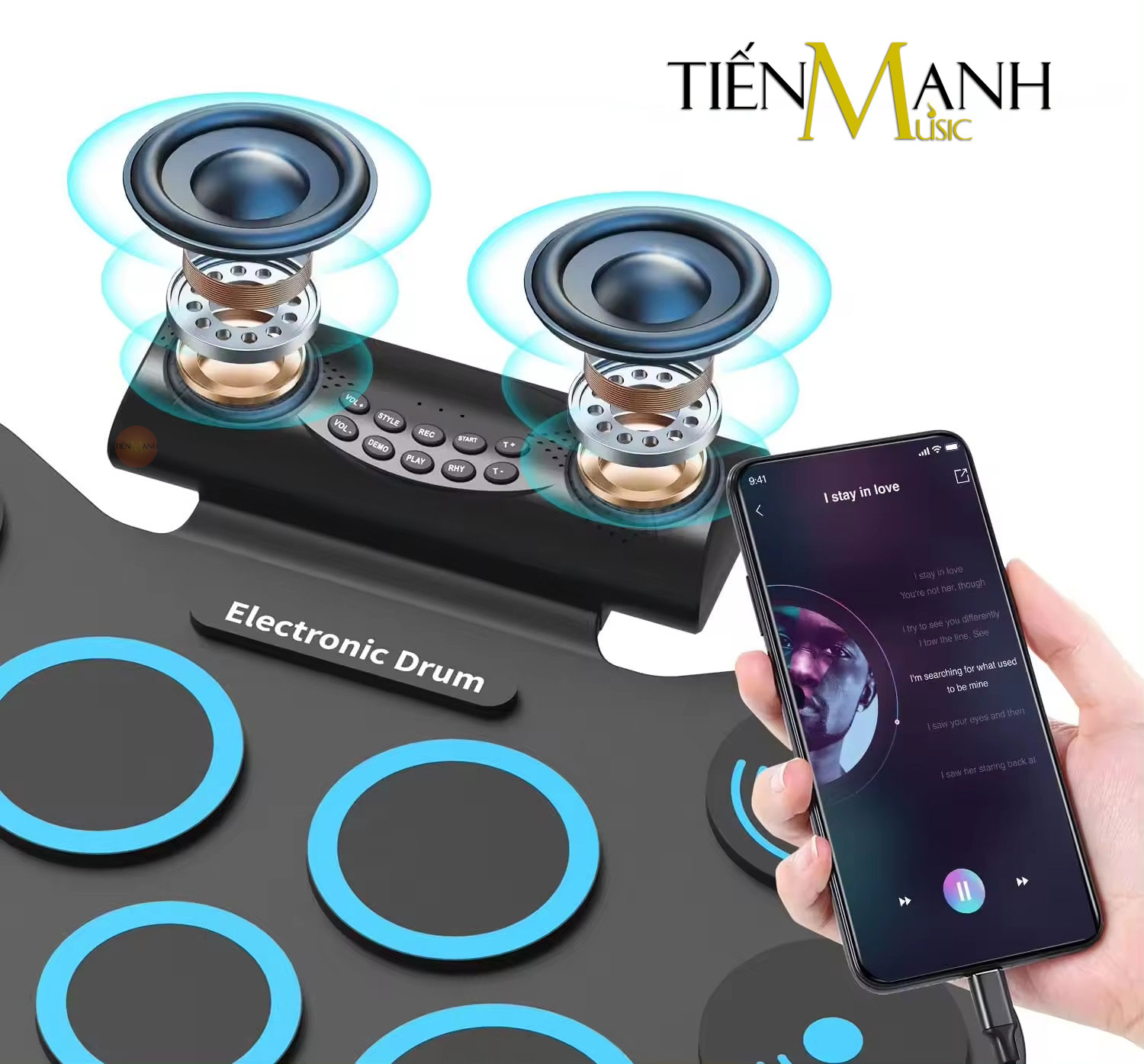 - Pin sạc, hỗ trợ Bluetooth để chơi trên app (đi kèm trống, có hướng dẫn tiếng việt), và phát nhạc lên trống.