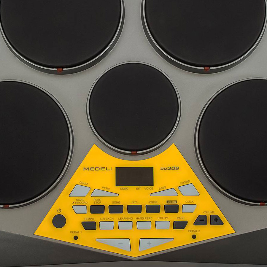 - Trống Điện Tử Medeli DD309 là lựa chọn tuyệt vời cho những người đam mê chơi trống và đang bắt đầu tập chơi. - Giao diện điều khiển với 7 mặt trống cảm ứng, 2 bàn đạp,