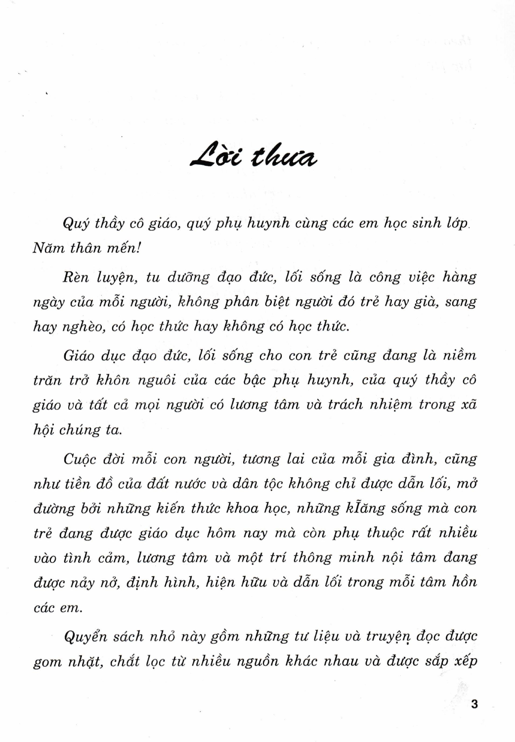 Mặc dù vẫn còn nhiều hạn chế, song chúng tôi rất mong những tư liệu, mẩu chuyện nhỏ trong cuốn sách này sẽ được đón nhận, chia sẻ bởi các bậc phụ huynh, quý thầy cô giáo và các em học sinh. Hi vọng qua tư liệu, câu chuyện sẽ để lại trong mỗi chúng ta những tình cảm nhân văn tốt đẹp, những ý niệm về tình yêu cuộc sống, trách nhiệm của mỗi người đối với bản thân, gia đình, cộng đồng, quê hương, Tổ quốc và nhân loại. Những tình cảm ấy rồi sẽ lớn lên trong mỗi trái tim, trong mỗi tâm hồn và thôi thúc chúng ta hành động theo lẽ phải.
