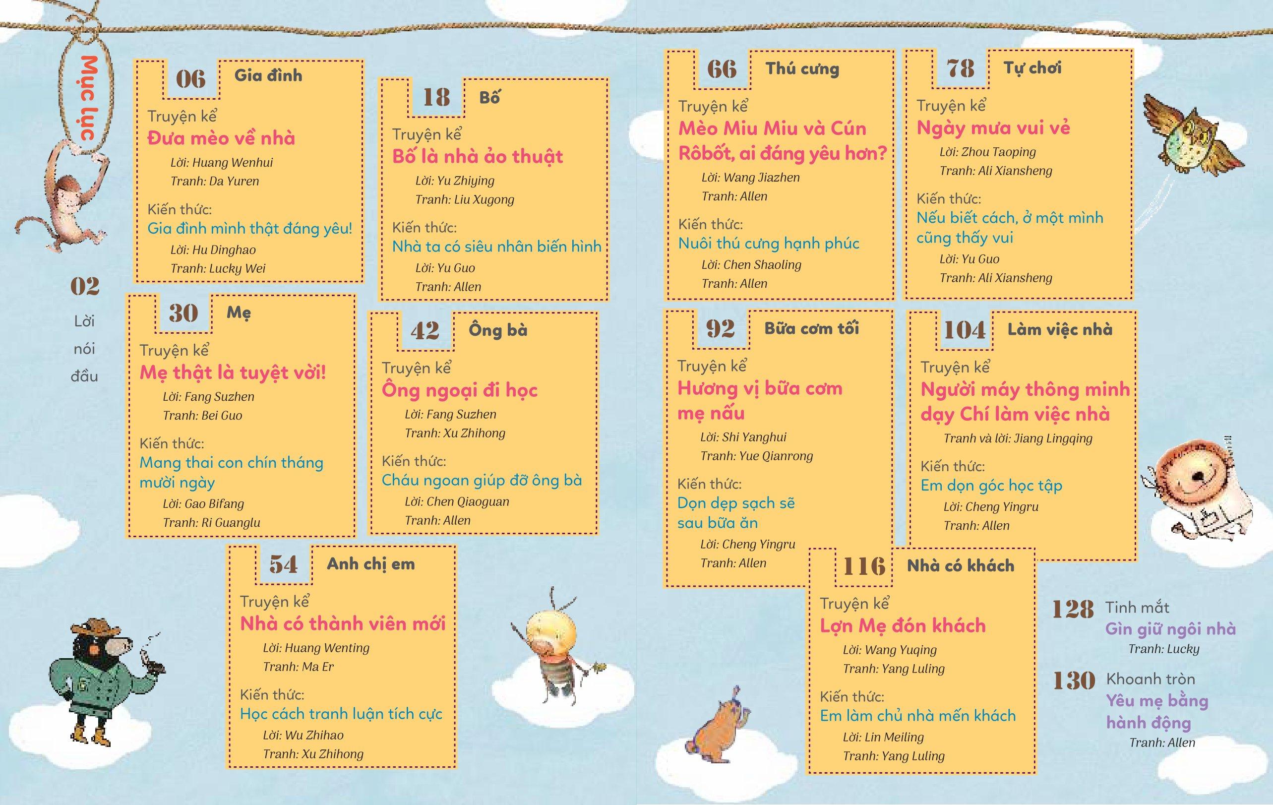 Truyện Kể Và Kiến Thức Dành Cho Lứa Tuổi Nhi Đồng – Tập 3 – Gia Đình – Đưa Mèo Về Nhà bao gồm các mẩu chuyện về gia đình: tổ ấm, bố mẹ, ông bà, anh chị em, vật nuôi, ở một m.ình, bữa tối gia đình, làm việc nhà, thái độ khi khách đến chơi nhà. Mười câu chuyện hấp dẫn với những góc nhìn khoa học thú vị góp phần kích thích trí tò mò, khuyến khích trẻ quan tâm đến người thân cũng như thấu hiệu được tầm quan trọng của gia đình.