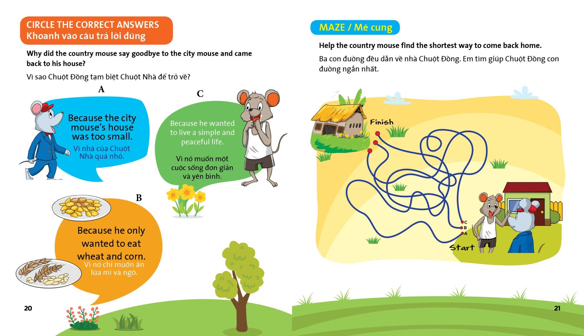 Là câu chuyện ngụ ngôn hay nhất dành cho thiếu nhi, sách được thiết kế cho bé luyện đọc, kèm theo đó là phần song ngữ tiếng anh giúp các bé hiểu thêm về tiếng anh ôn luyện đọc mỗi ngày tốt hơn