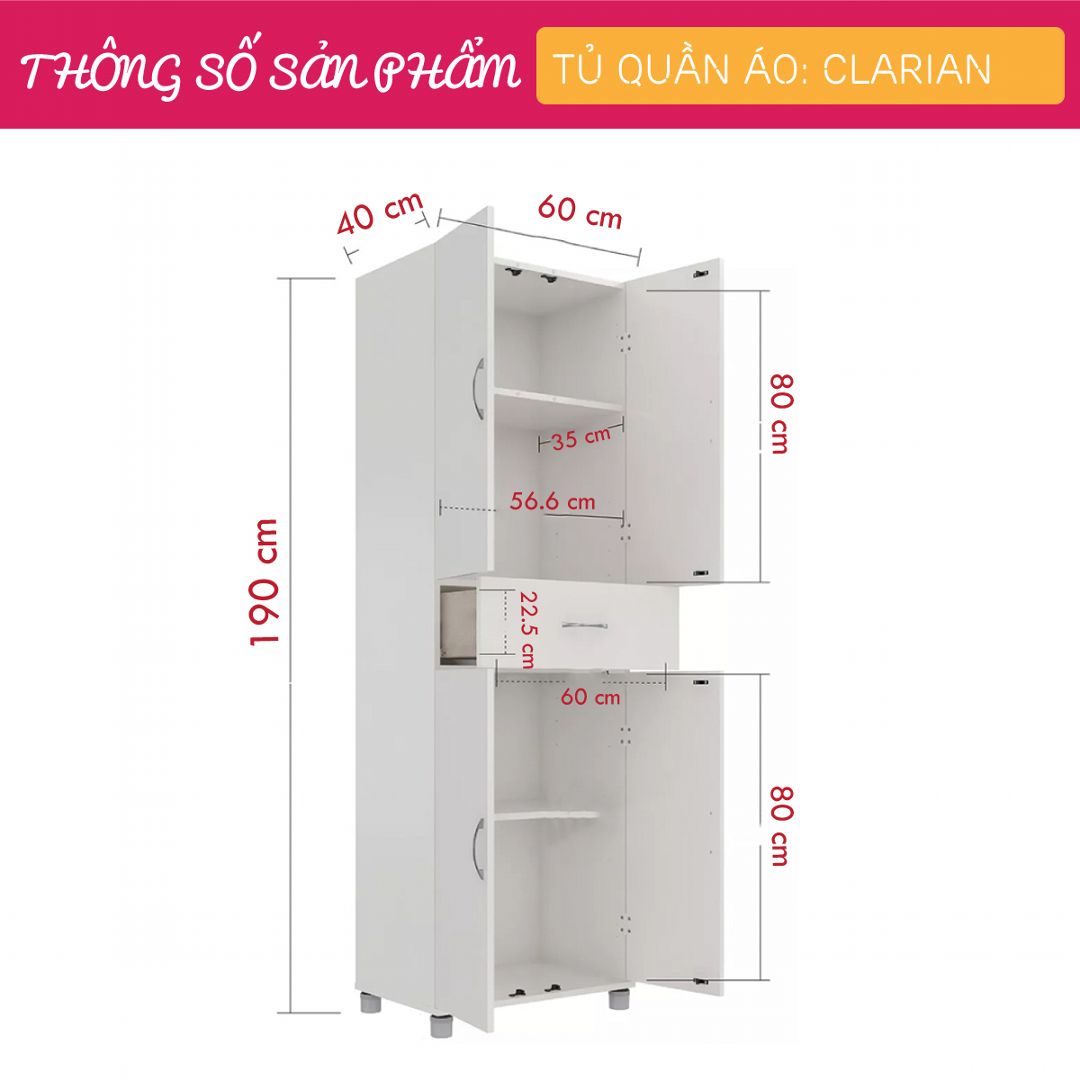 - Kích thước: Dài 60cm x Rộng 40cm x Cao 190cm