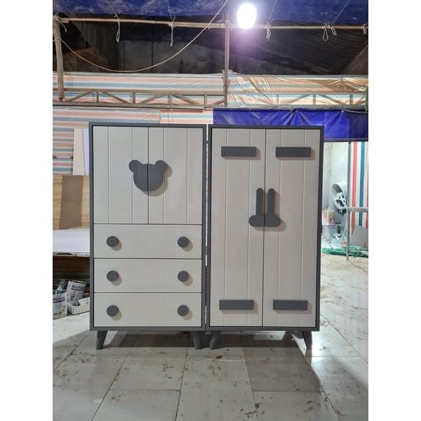 Tủ quần áo kết hợp kệ để đồ cho bé.
