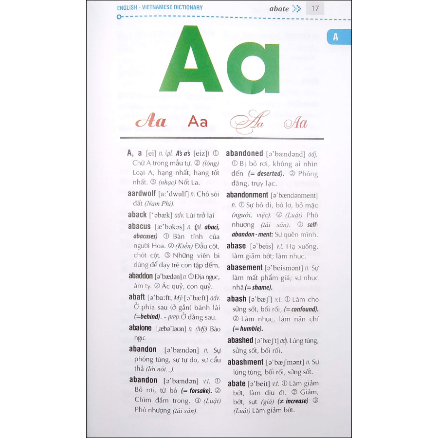 Nhằm đáp ứng nhu cầu học tiếng anh đa dạng của độc giả , chúng tôi đã biên soạn bộ từ điển Anh - Việt để phục vụ cho người học tiếng anh thuộc mọi