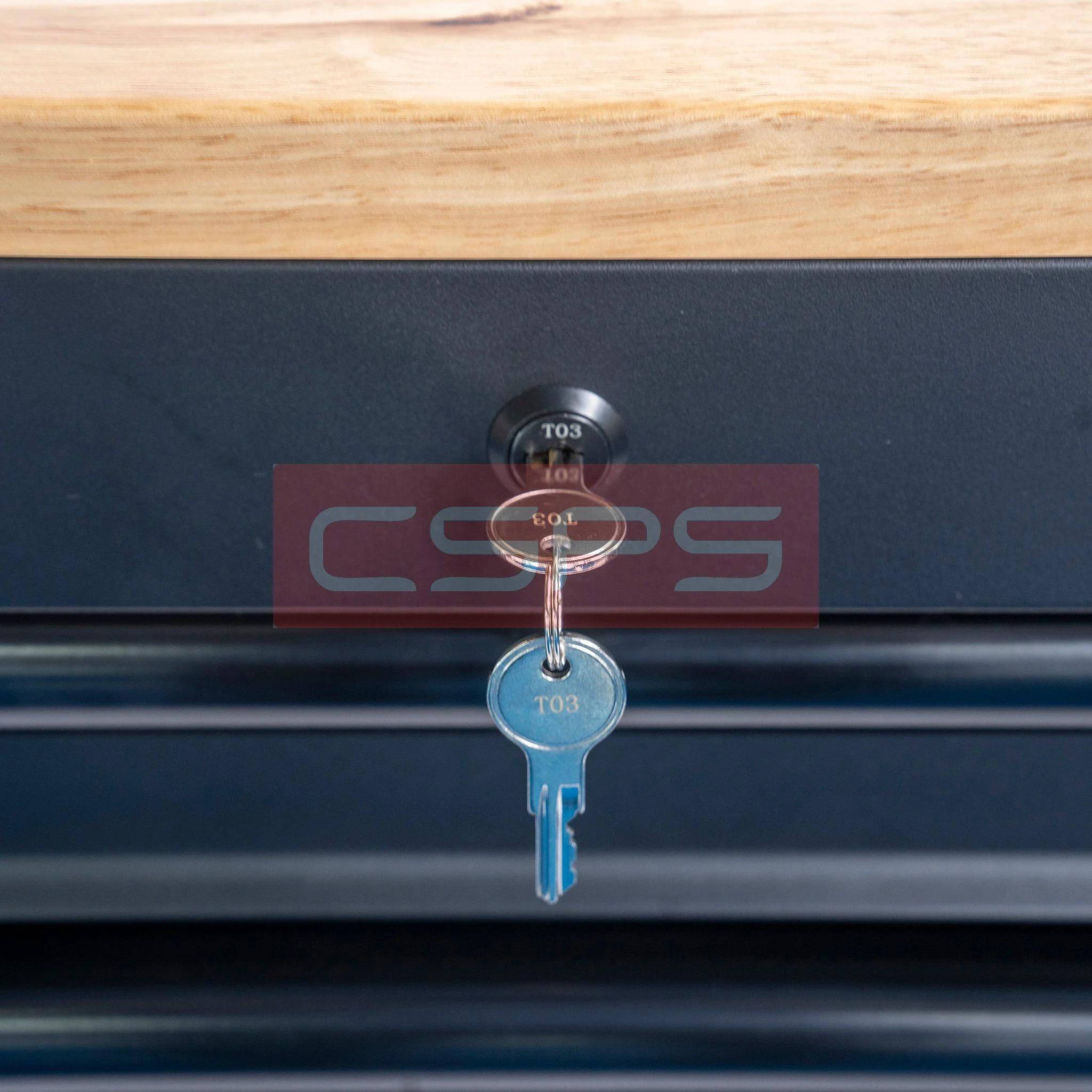Tủ dụng cụ 7 ngăn kéo có mặt ván gỗ kèm ray đóng êm CSPS THÔNG SỐ KỸ THUẬT 1) THÔNG SỐ CHUNG Kích thước sản phẩm: 76,5 cm W x 46,2 cm D x